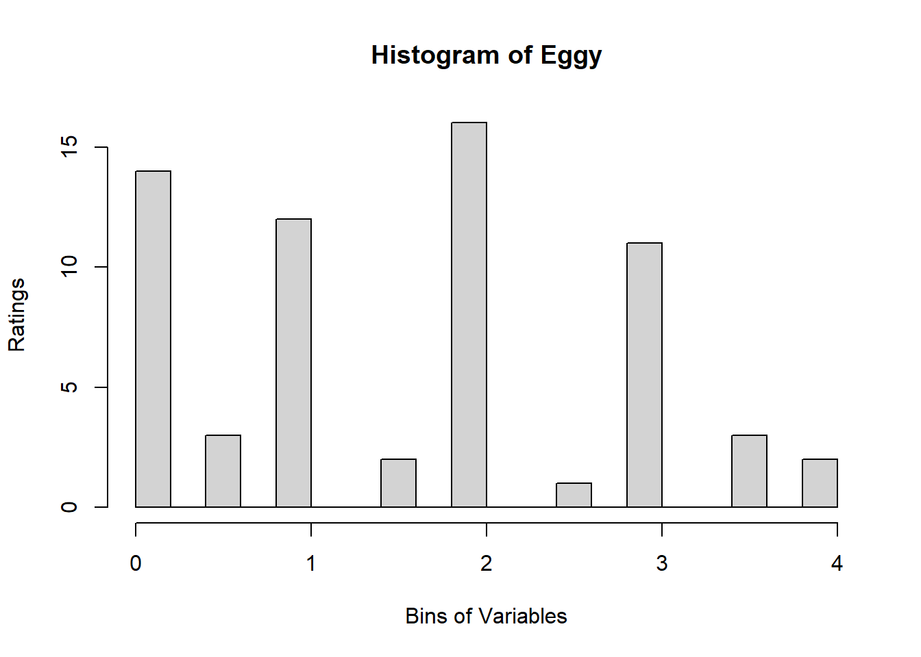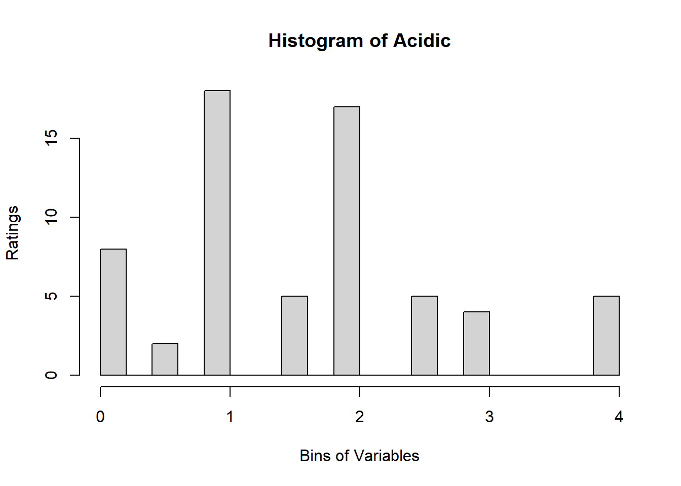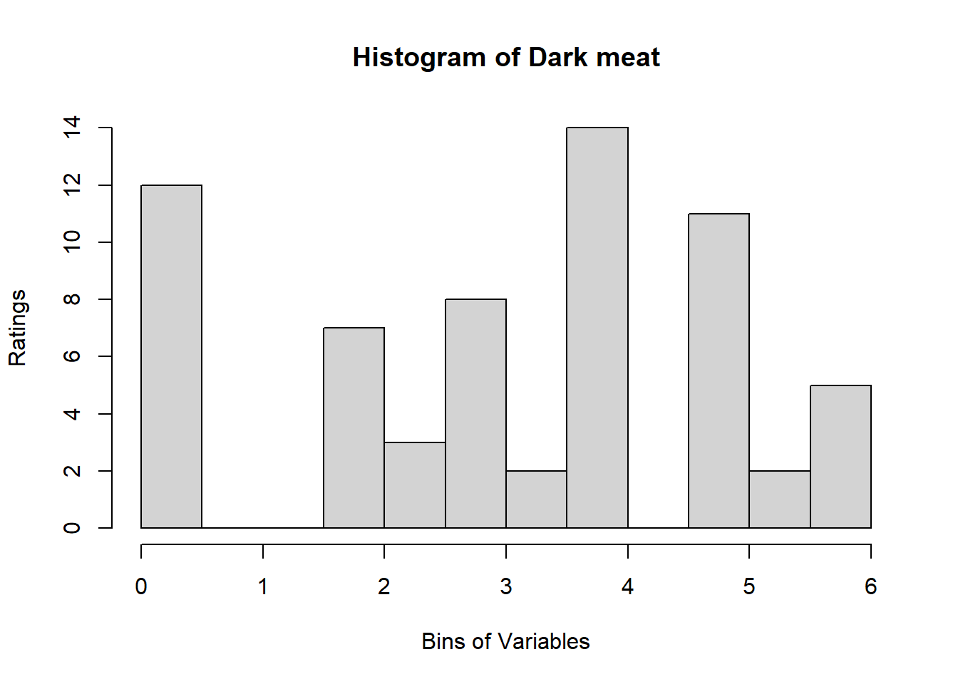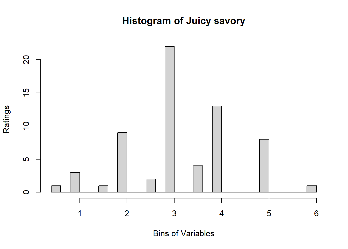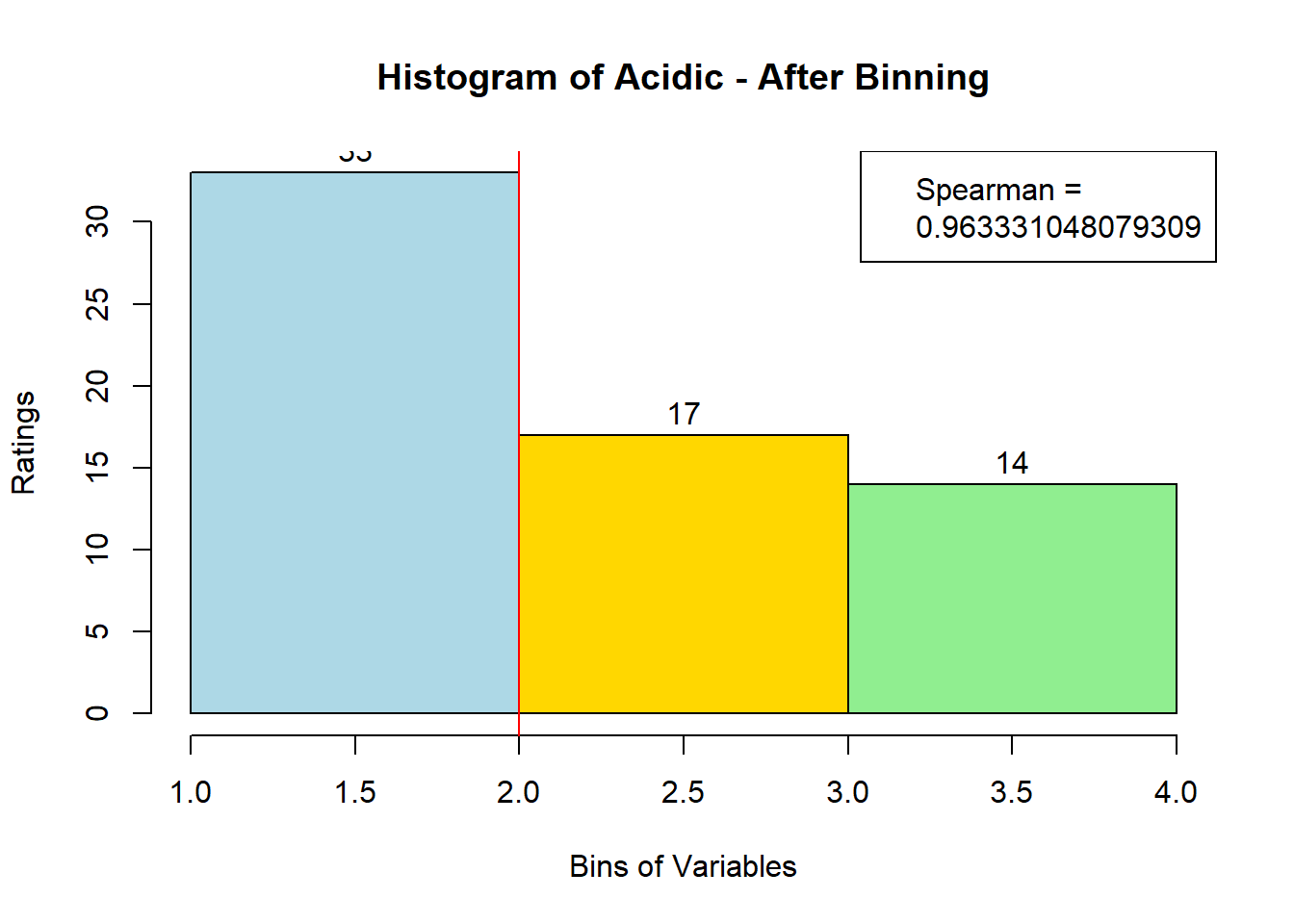 Next, after looking at the newly-filled bin_data, we see that 3 variables (Bitter-6, Fatty-13, HVP-14) had issue. We will attempt to bin them manually. Suspected reason: