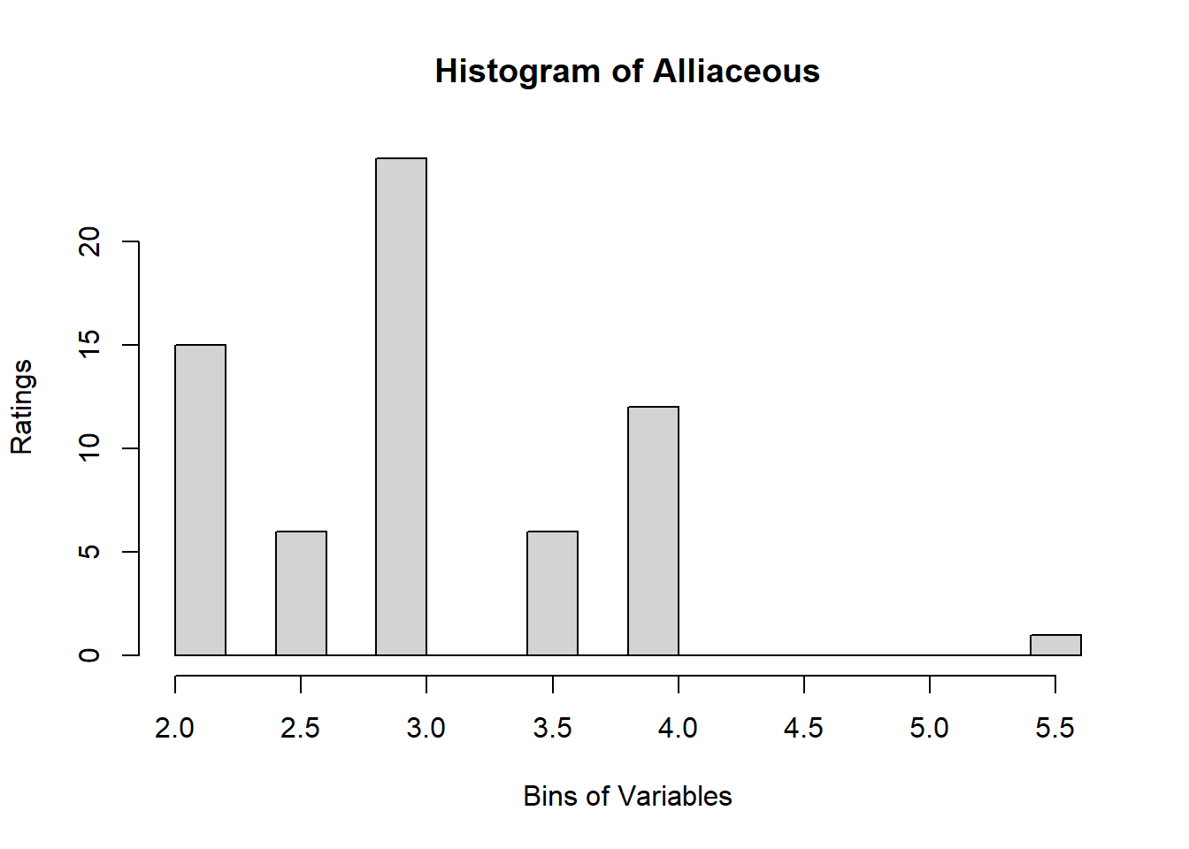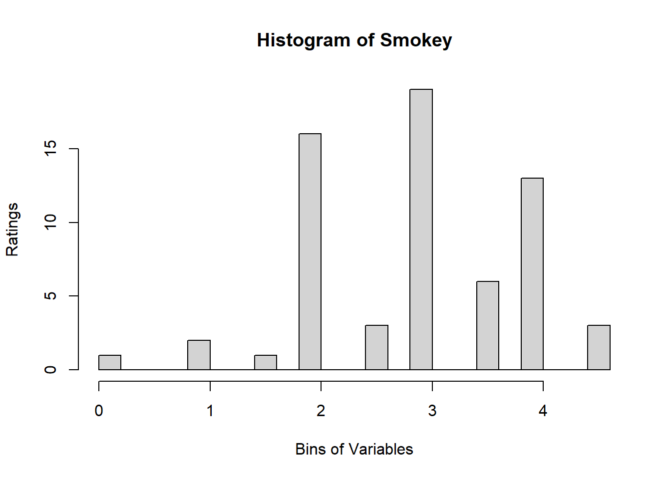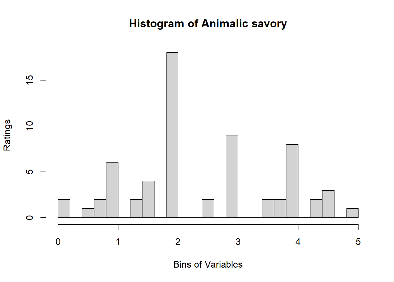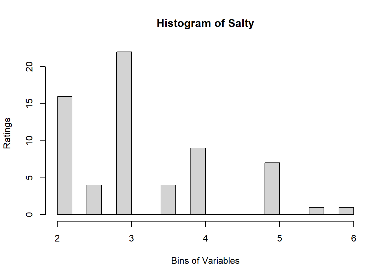 Next, after looking at the newly-filled bin_data, we see that 3 variables (Bitter-6, Fatty-13, HVP-14) had issue. We will attempt to bin them manually. Suspected reason: