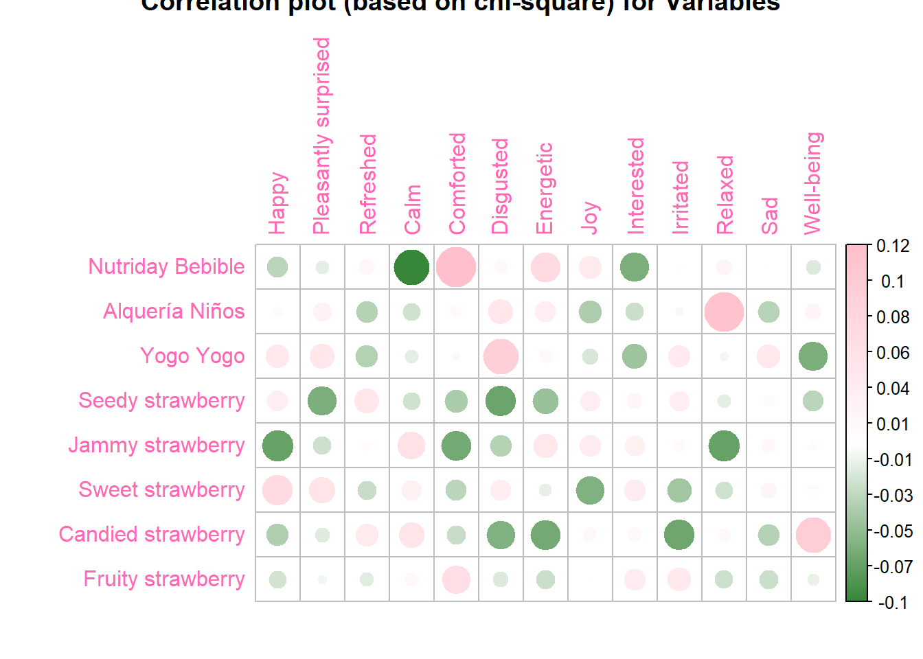 N = 75 Bogotá, Colombia Men 50% Women 50% Age: 8 - 12 (50%) ; 13 - 20(50%). Database is the summary of the frequencies of all consumers selection Products were presented in a sequential monadic way (one at a time) Main question: How do you feel when you taste this product? Emotions were presented in a list, and consumers were able to choose as many emotions as they want