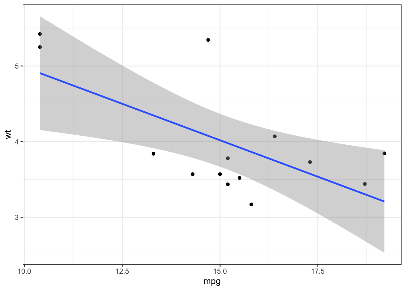 p <- mtcars_lst %>% map(~ ggplot(data = .x, aes(x = mpg, y = wt)) +