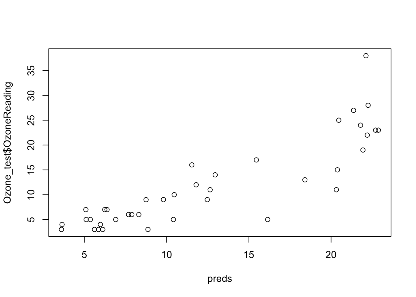 Above result suggests that for each unit change in PressureHeight, the OzoneReading variable is increased by 6.846e-04. Of course, since this is a multiple regression task (i.e., there are multiple predictors), the interpretation of the coefficient value is not as straightforward.