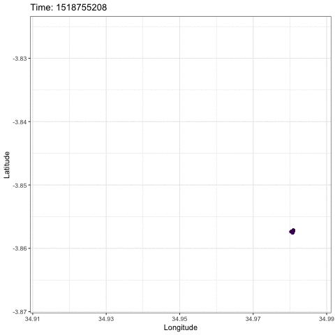 If you have saved an animation, you can include that animation in your RMarkdown document by using the function include_graphics which is a part of the knitr package. As with other included images, you can (and should) specify the width that you would like the image to be displayed using the out.width variable in your chunk header. This variable can be set to a number of pixels (e.g. out.width="500px") or a percentage of the available page width (e.g. out.width = '80%').