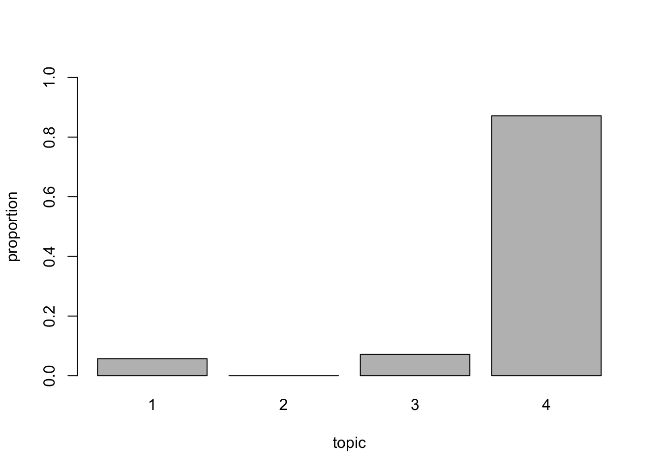 barplot(doc_topic_distr[127, ], xlab = "topic",