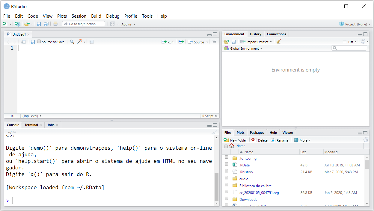 . Na janela do RStudio deve ficar conforme a figura a seguir.