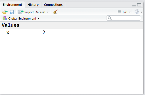 Todos os objetos que forem criados na sua sessão do R/RStudio serão automaticamente armazenados no que chamamos de Global Environment, representado pela aba Environment no RStudio.