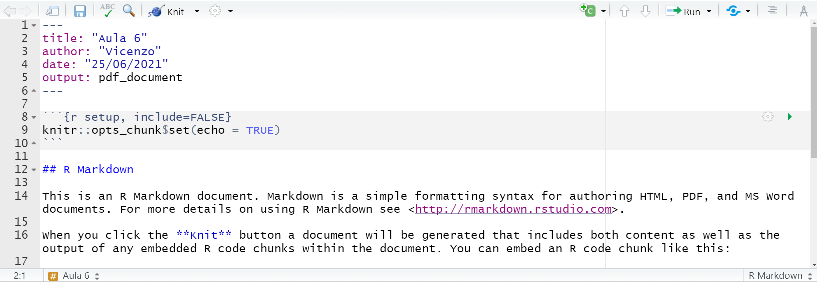 você vier a construir ou programar com R Markdown. Se você já quiser