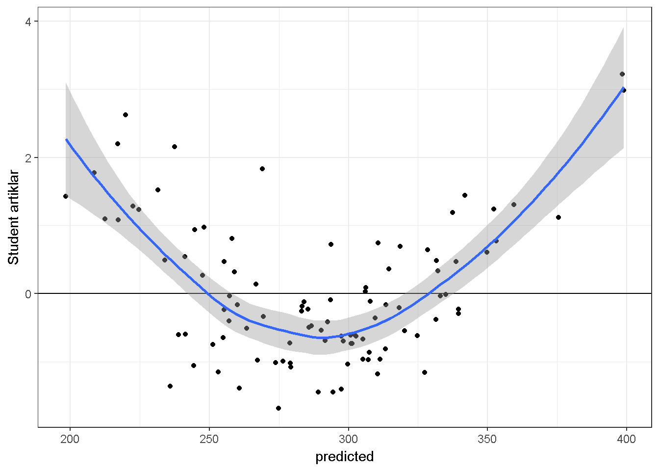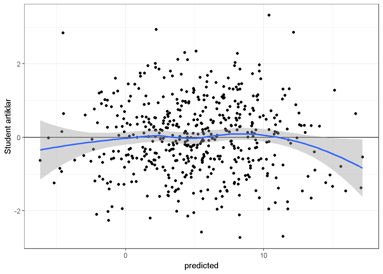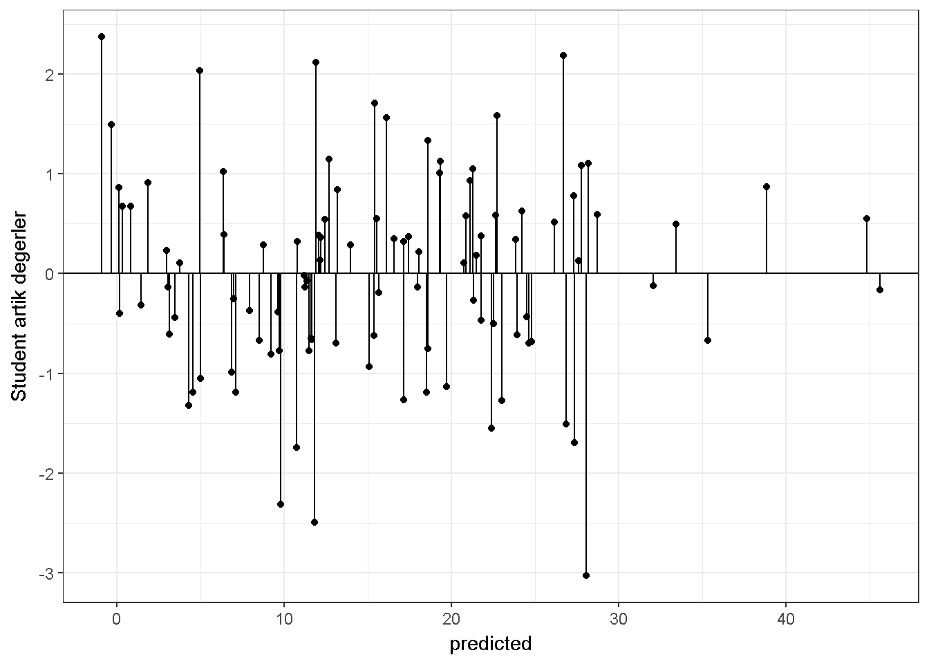 • Student artıklar: Ham artıkların tahmin edilen standart hataya bölünmesi ile hesaplanır.