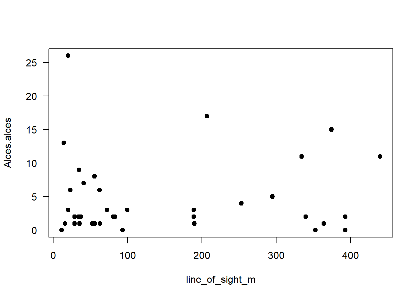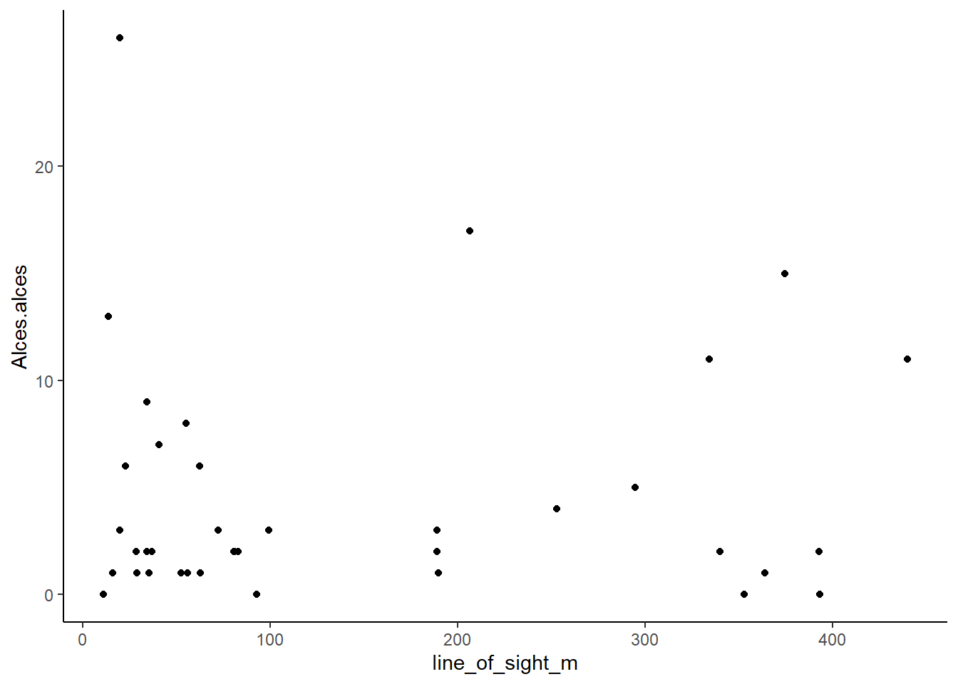 aes(x=line_of_sight_m, y=Alces.alces)) +
