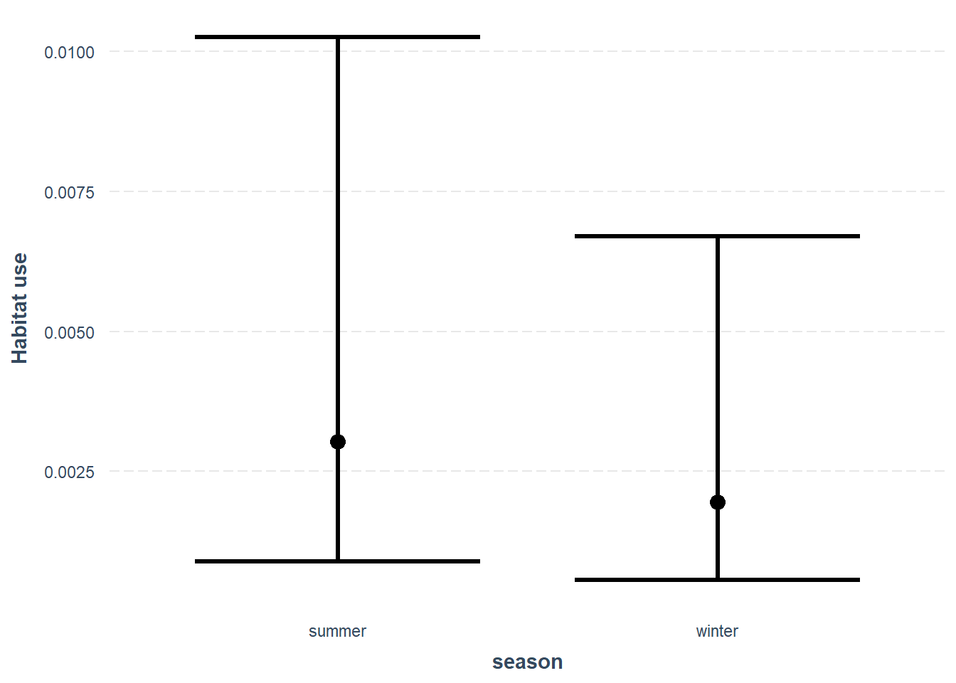 Which suggests habitat use is slightly lower habitat use in winter then in summer.