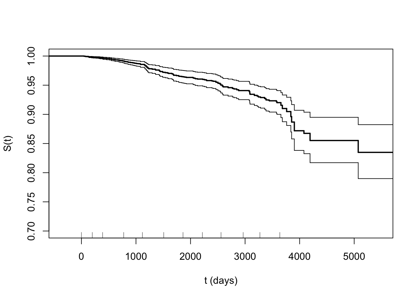 plot(stepfun(te,c(1,exp(-H))),do.points=FALSE,ylim=c(0.7,1),