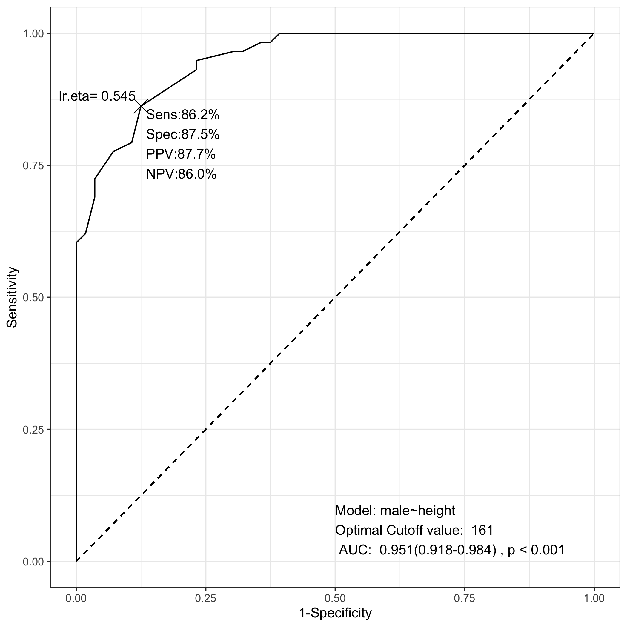 그림에서 최적의 절사점위에 lr.eta 값이 0.545로 표시되어 있다. 이 값은 어디에서 왔을까? 이 값은 다음의 일반화 회귀모형에서 나온 값이다.
