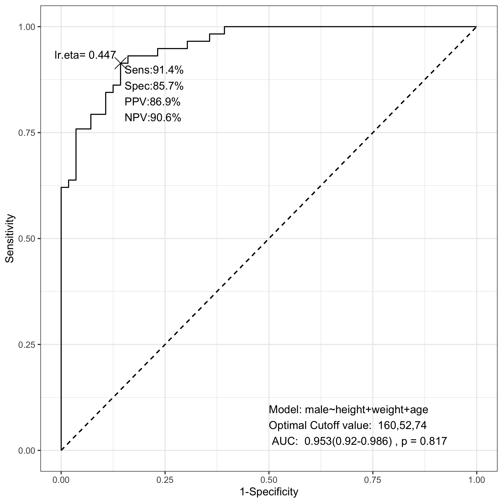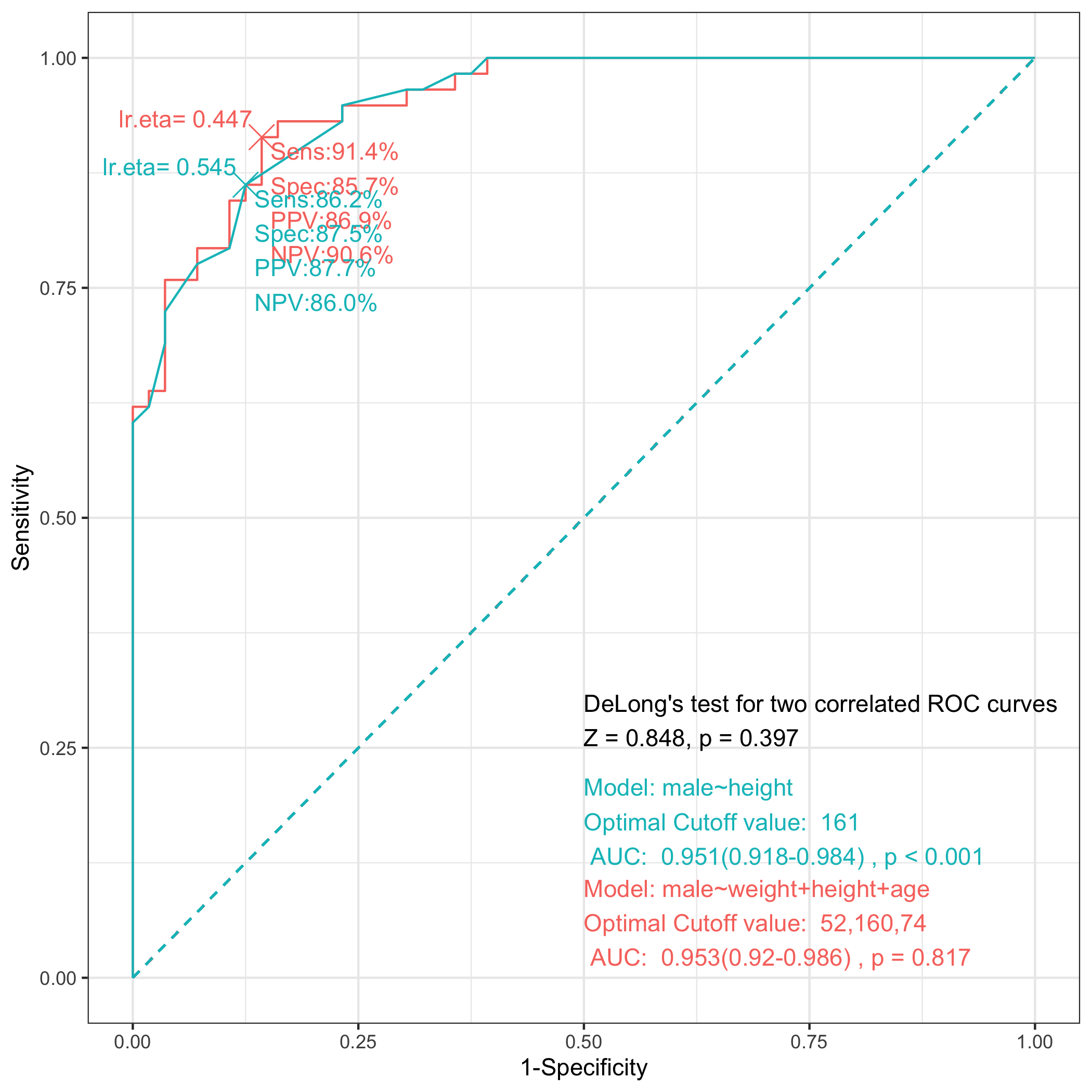 여러 개의 예측변수를 갖는 모형의 ROC 곡선도 그릴 수 있다.
