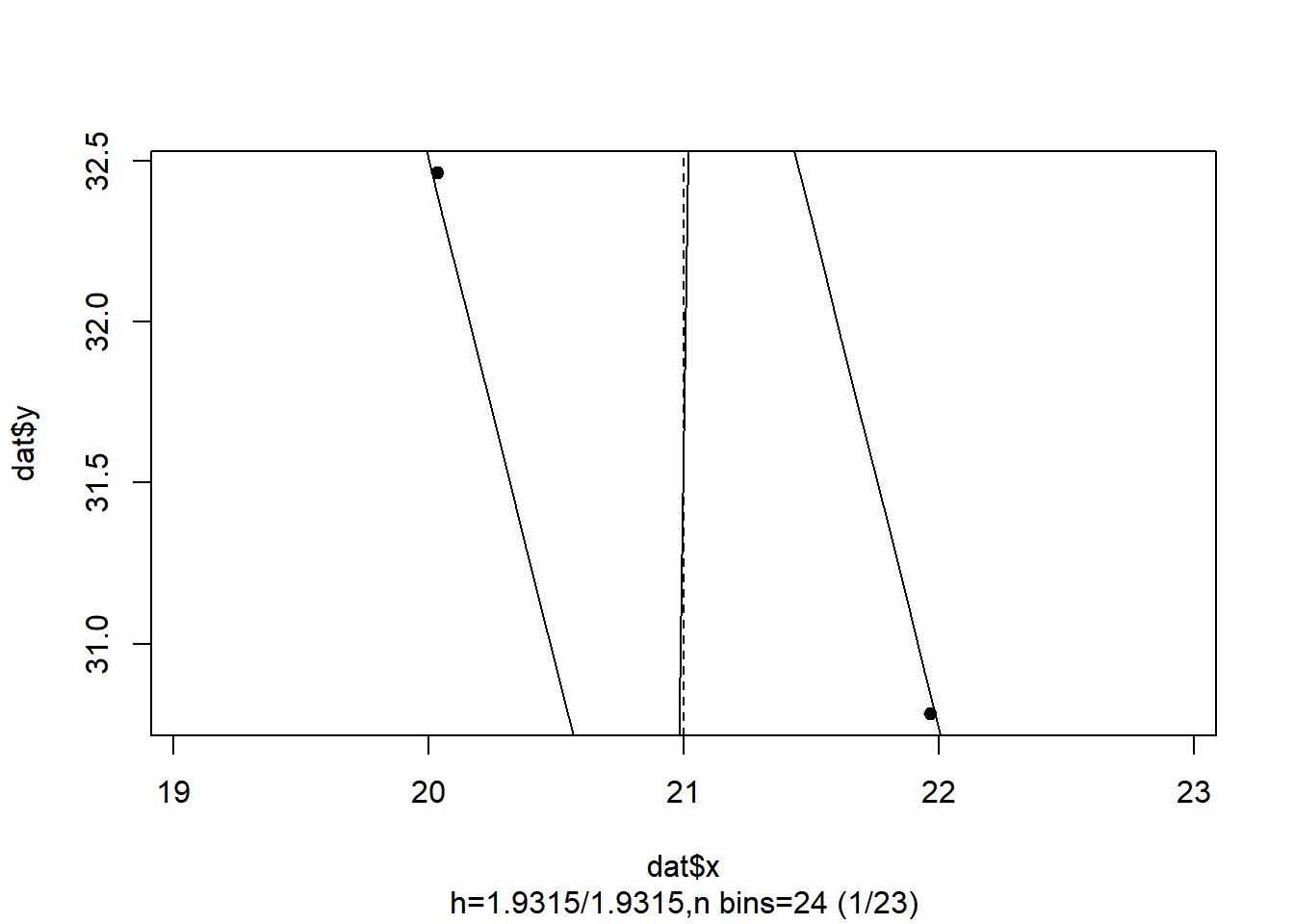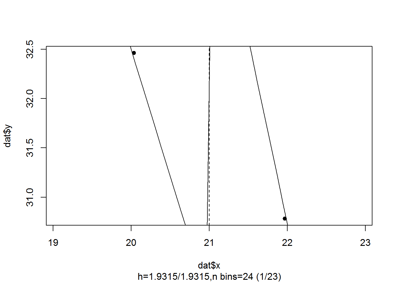 rdd_data(mlda$mva, mlda$agecell, cutpoint = 21) %>%