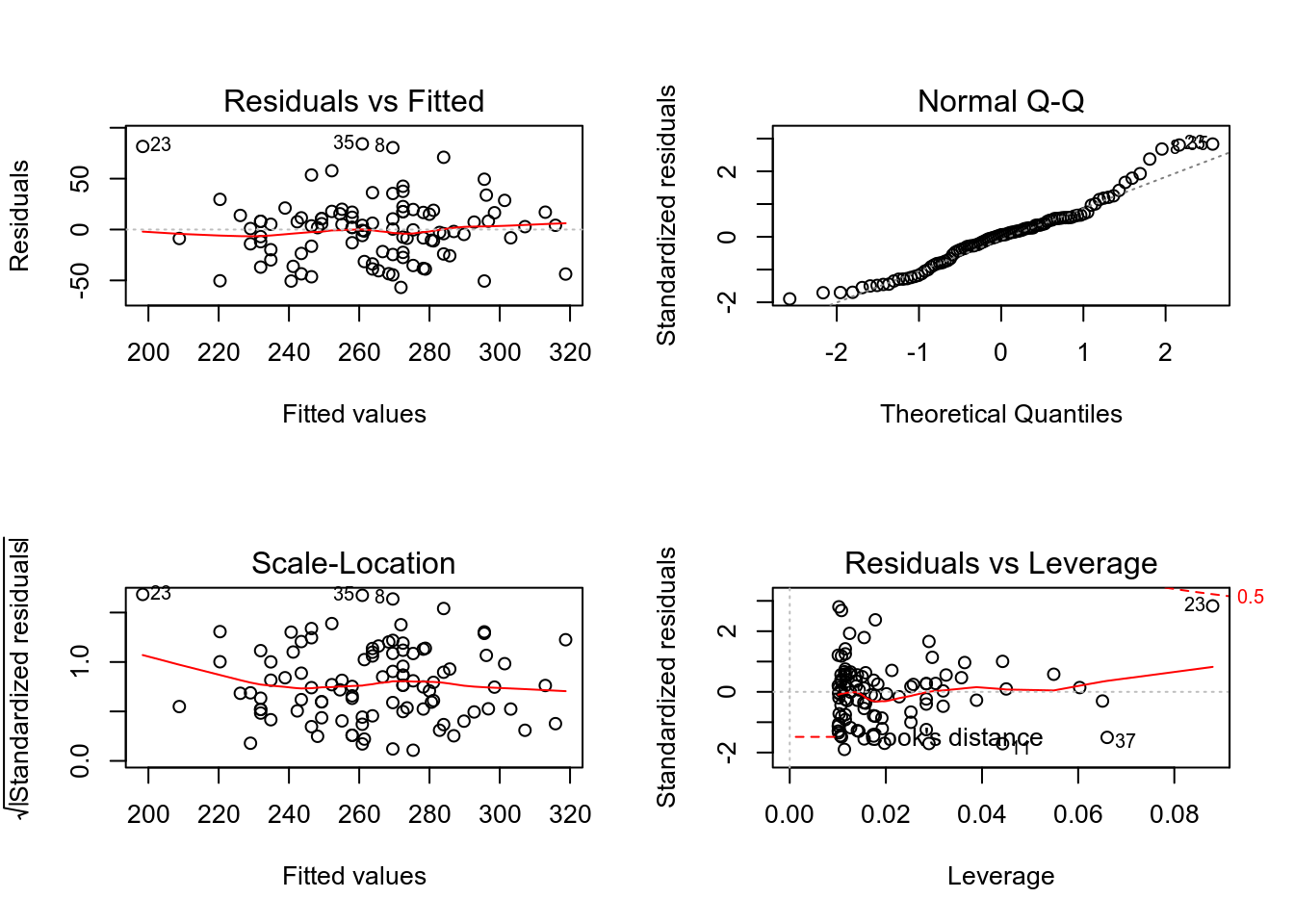 par(mfrow = c(2, 2)) # Split the plotting panel into a 2 x 2 grid