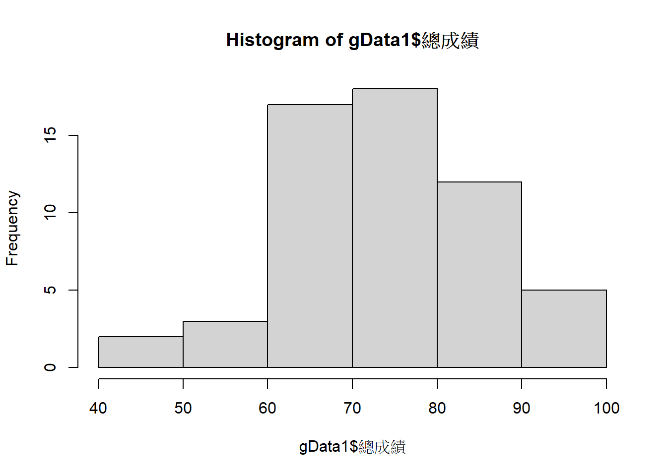 可用mean()、var()和sd()來檢視總成績的平均數、變異數和標準差。