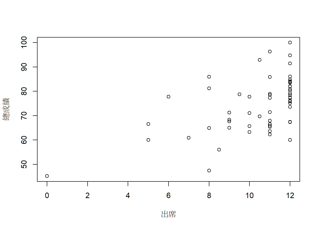 cor(gData1$出席, gData1$總成績)## [1] 0.5360227