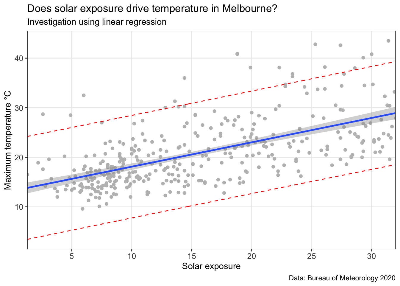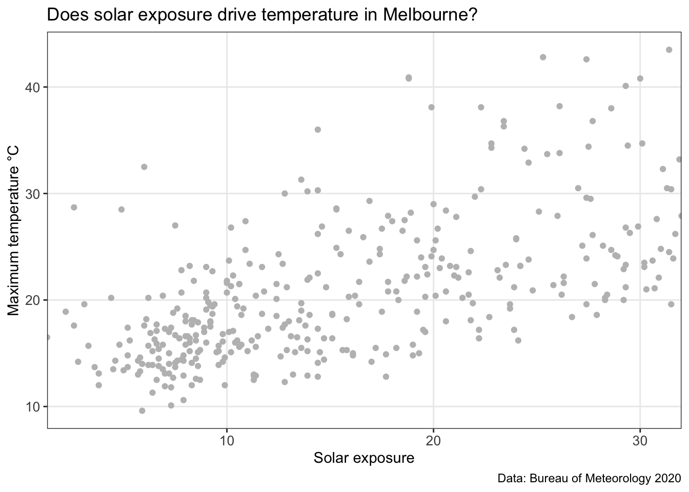 labs(title = "Does solar exposure drive temperature in Melbourne?",