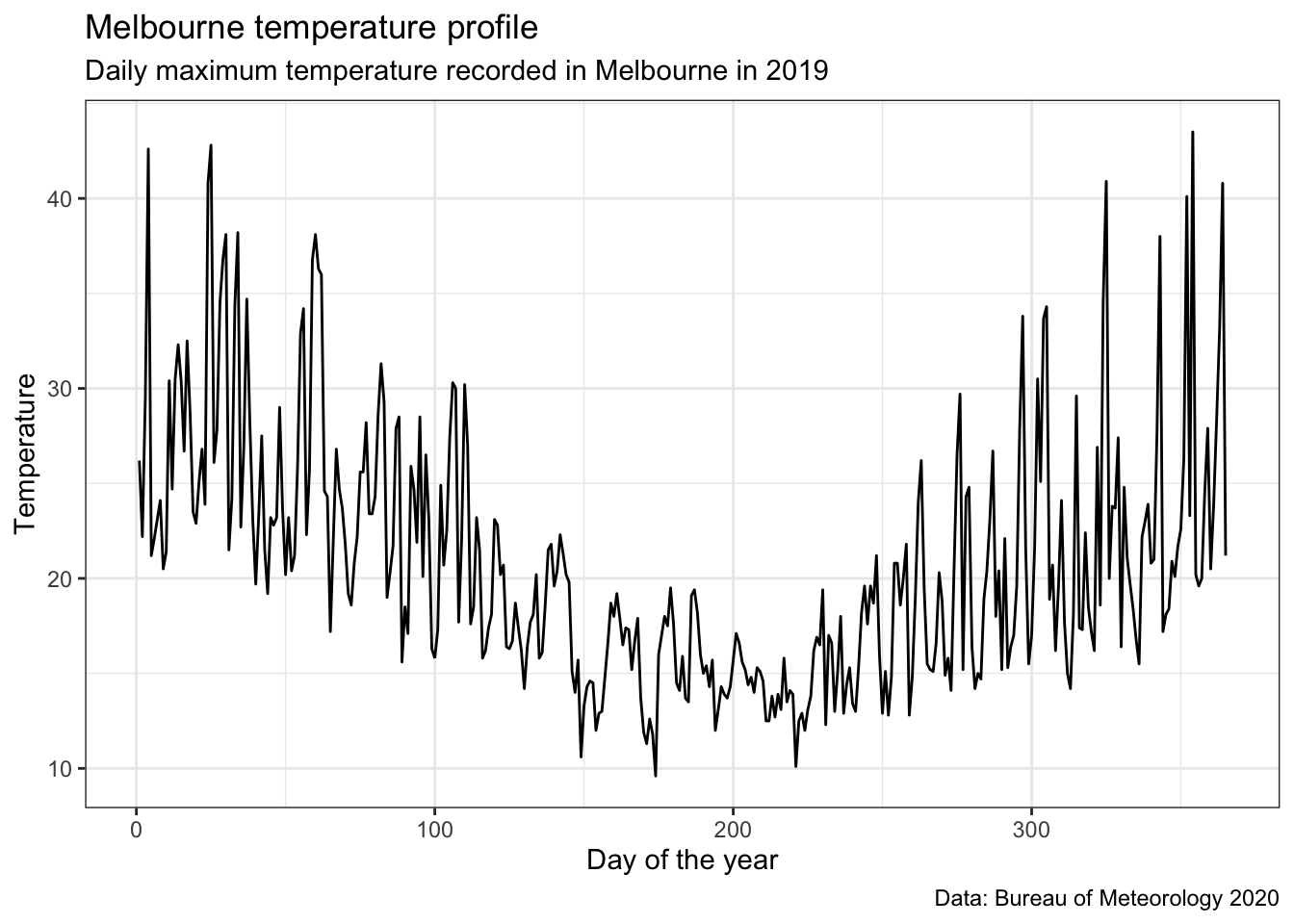 subtitle = 'Daily maximum temperature recorded in Melbourne in 2019',