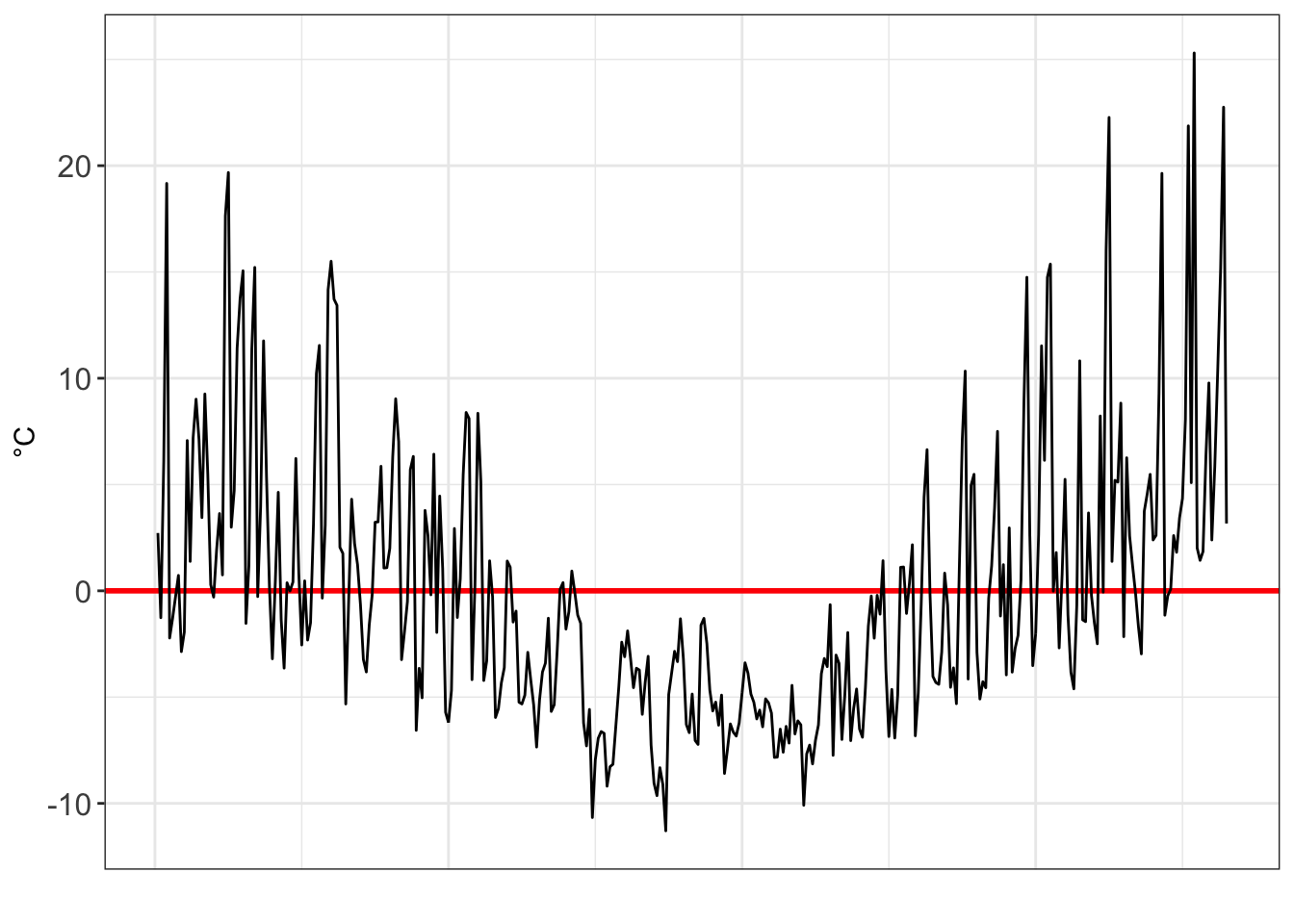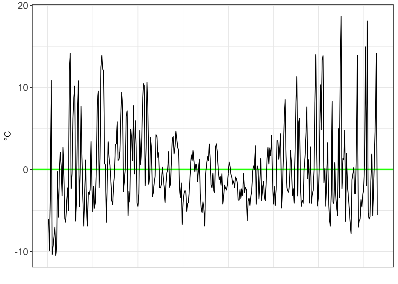 head(MEL_weather_2019)Using the same dataset as above, let’s plot temperature in Melbourne in 2019.