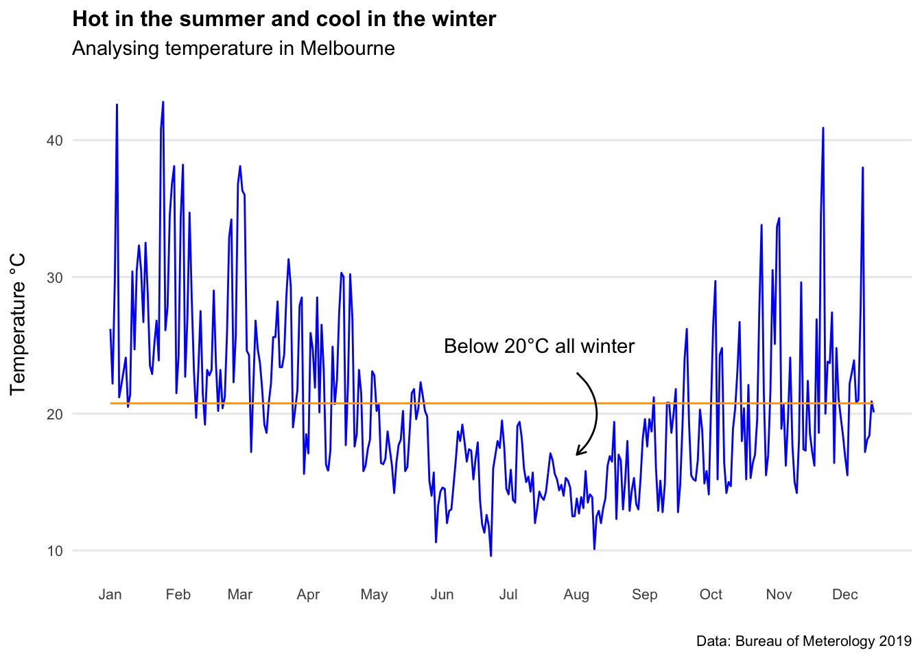 subtitle = 'Daily maximum temperature recorded in Melbourne in 2019',