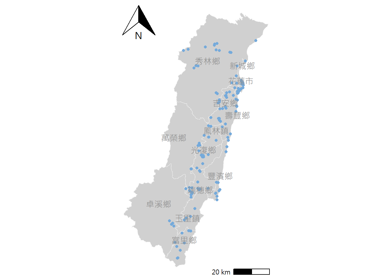 hualien=filter(TWspdata::taiwan_town, COUNTYNAME=="花蓮縣")