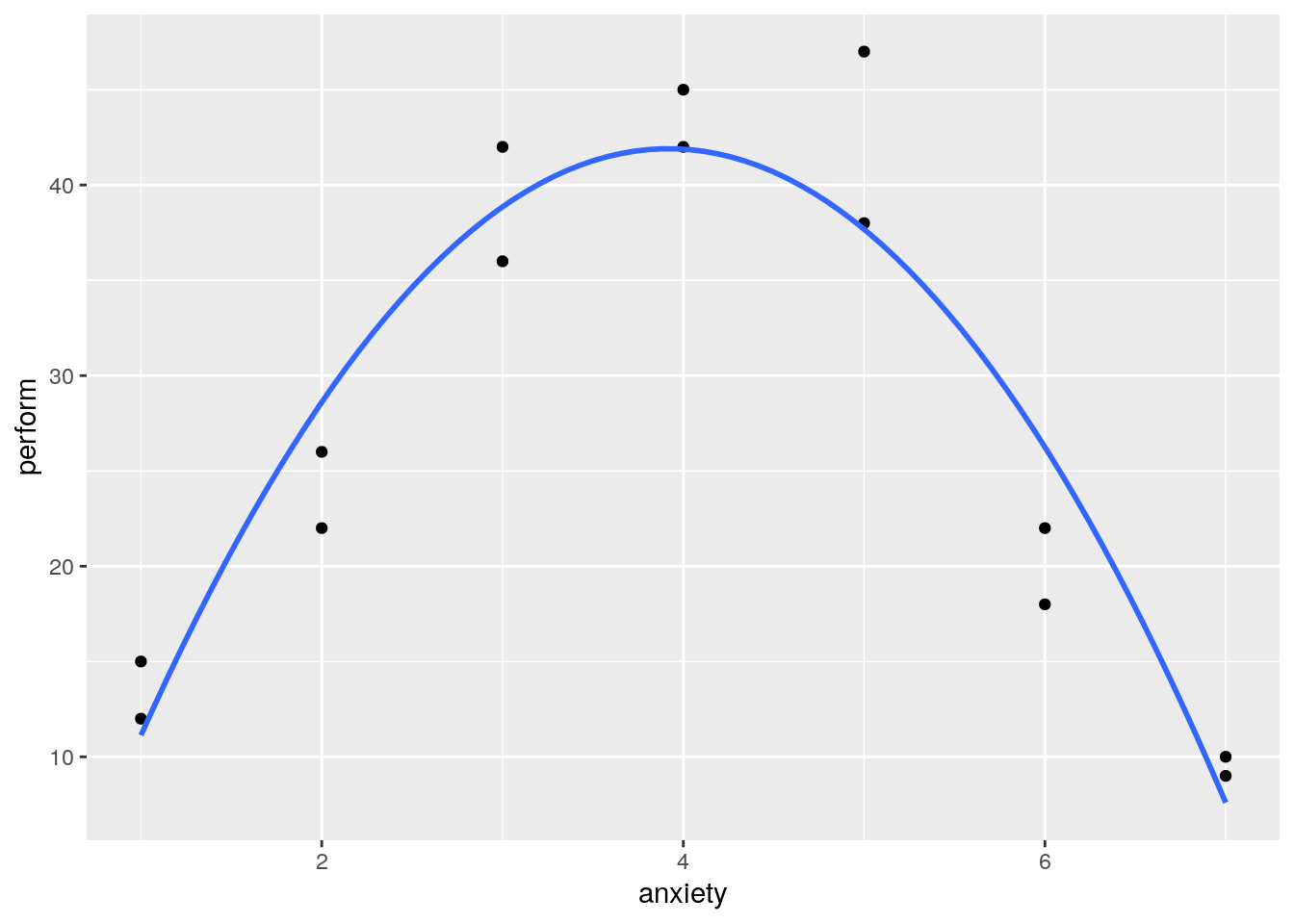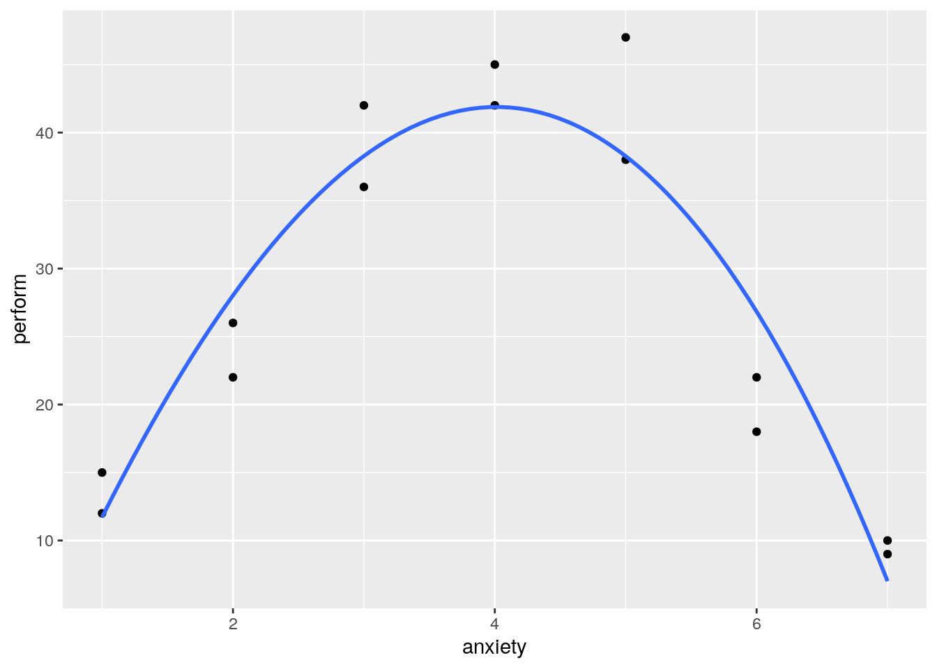 ## lm(formula = perform ~ anxiety + anxiety_squared, data = curvreg_data)