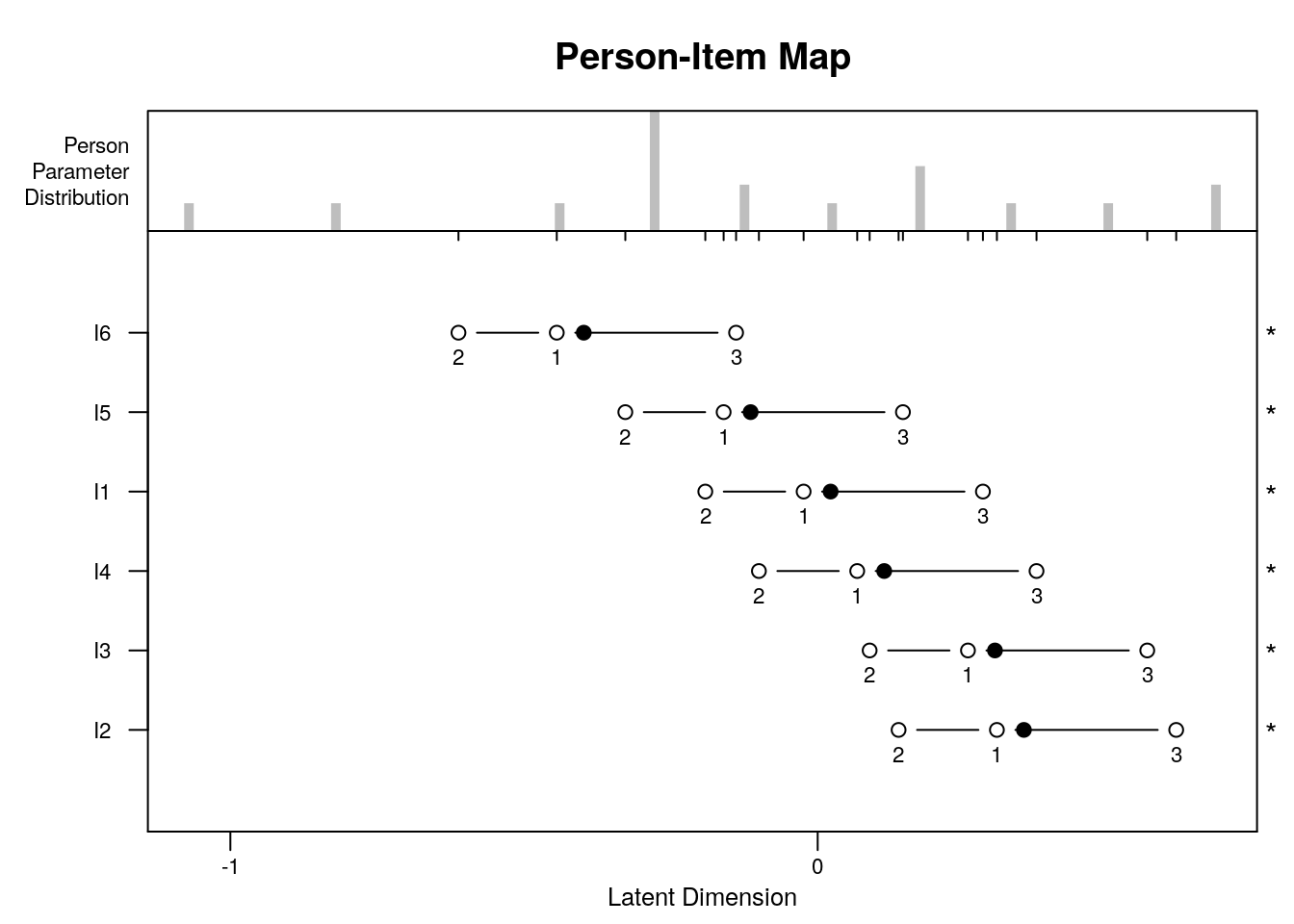 We can also examine the individual items’ ordering on the logit scale with reference to our theory about the expected ordering.