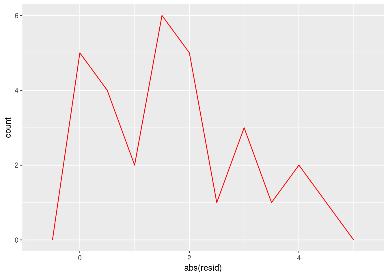geom_freqpoly(data = sim1_1, aes(abs(resid)),binwidth = 0.5,color = 'red')
