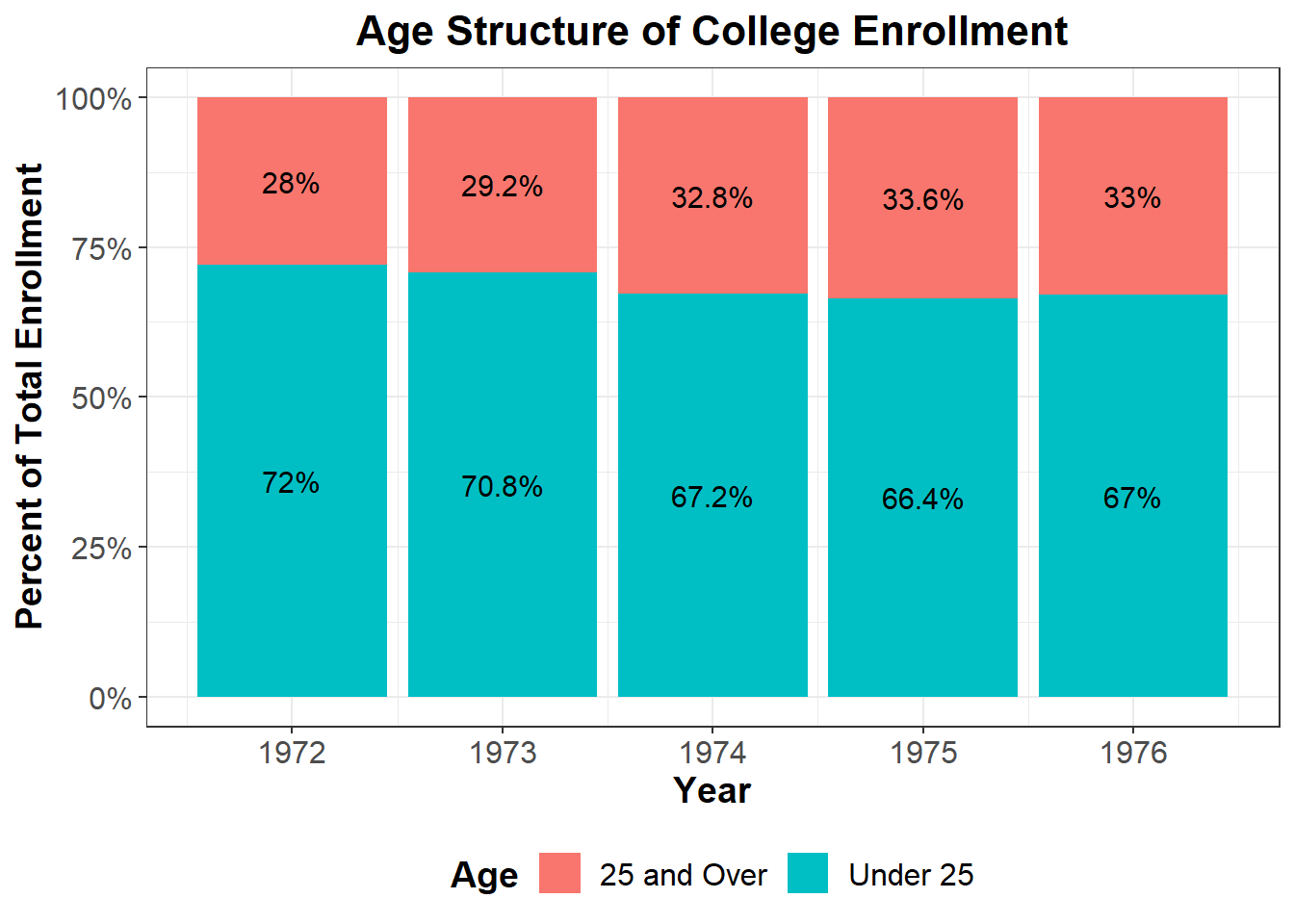 Here’s me making a graph with the statistical program R to display the same information, with a much better data-to-ink ratio. The data-ink ratio is the proportion of ink that is used to present actual data compared to the total amount of ink (or pixels) used in the entire display.