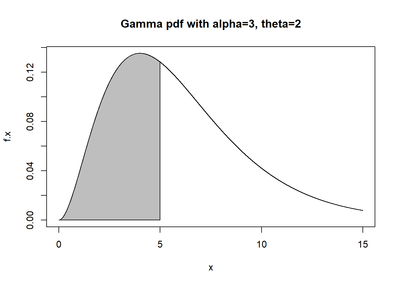 \[f(x;\alpha,\theta)=\frac{1}{\Gamma(\alpha) \theta^\alpha} x^{\alpha-1} e^{-x/\theta}\] where \(x,\alpha,\theta>0\).