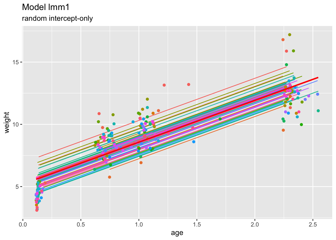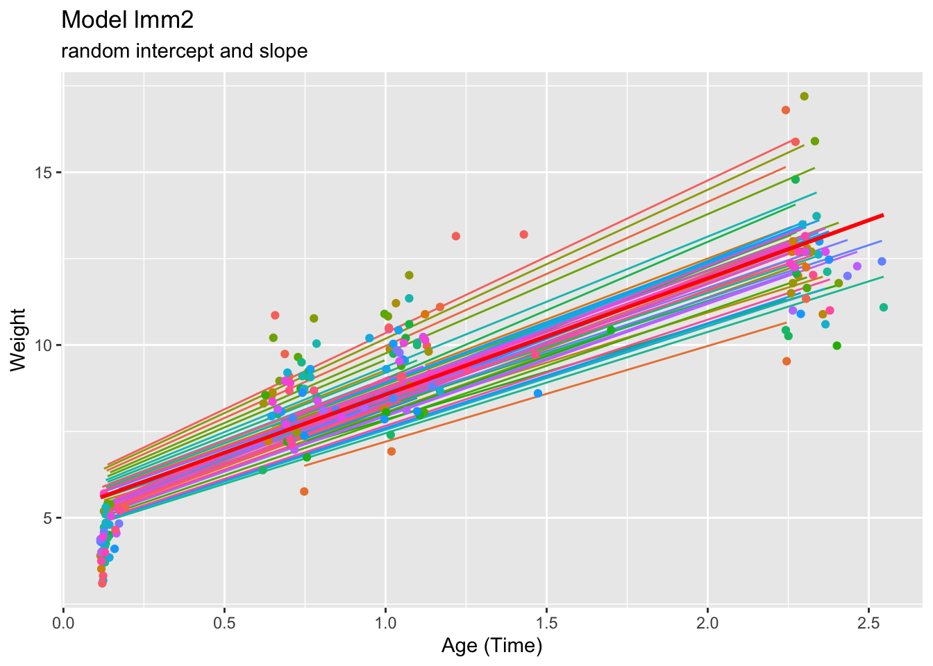 ## lmm2: weight ~ age + girl + (age | id)