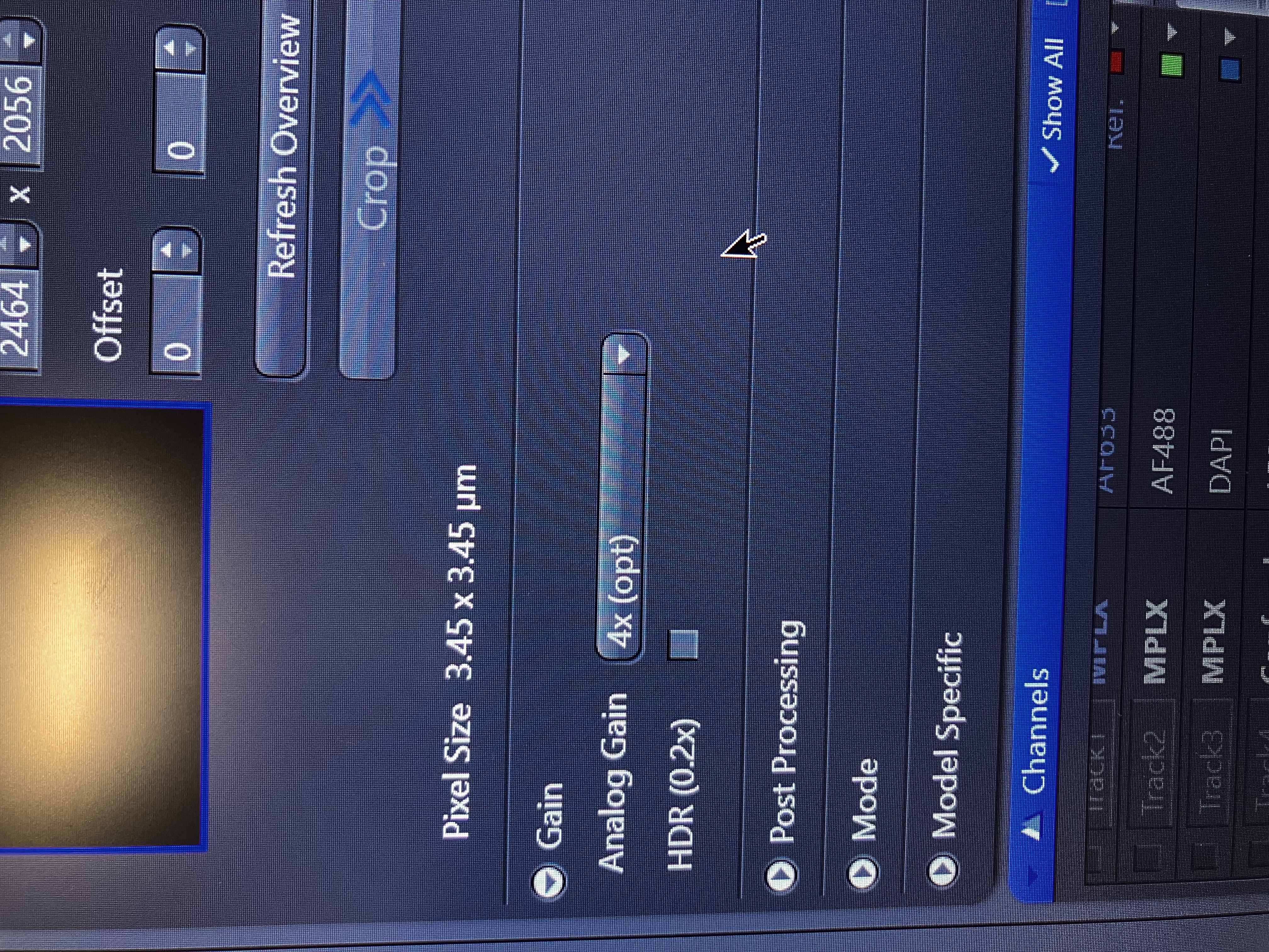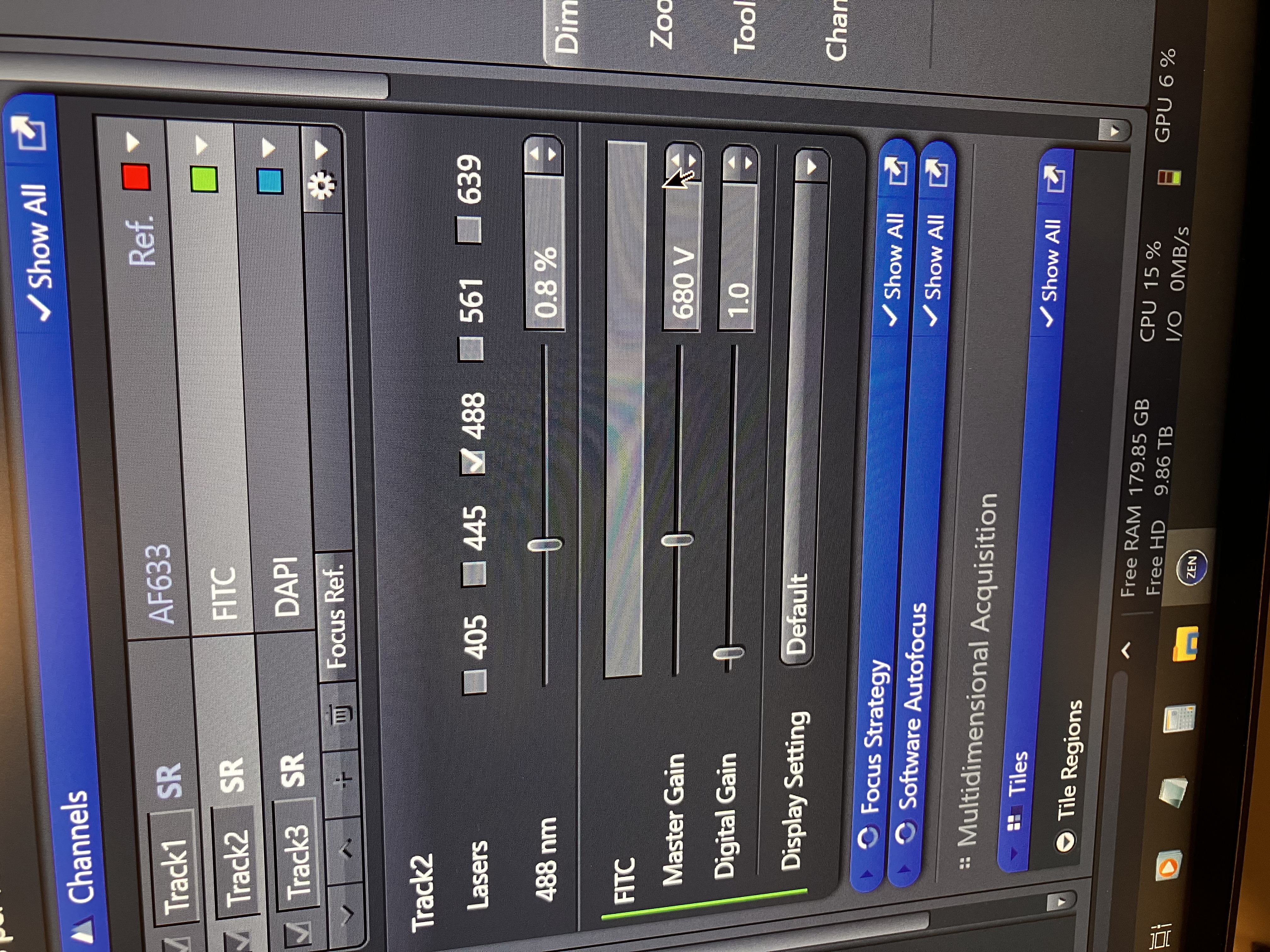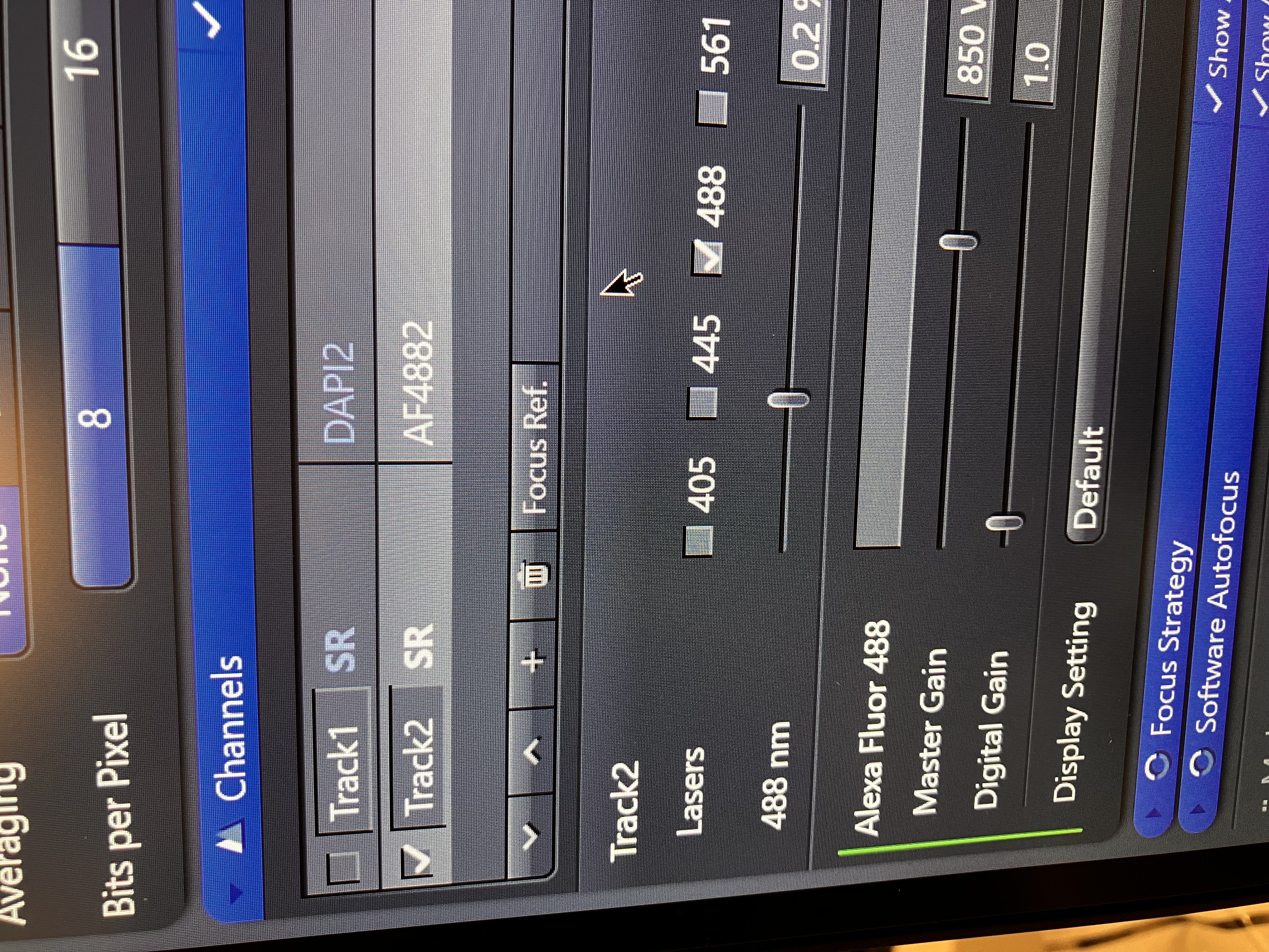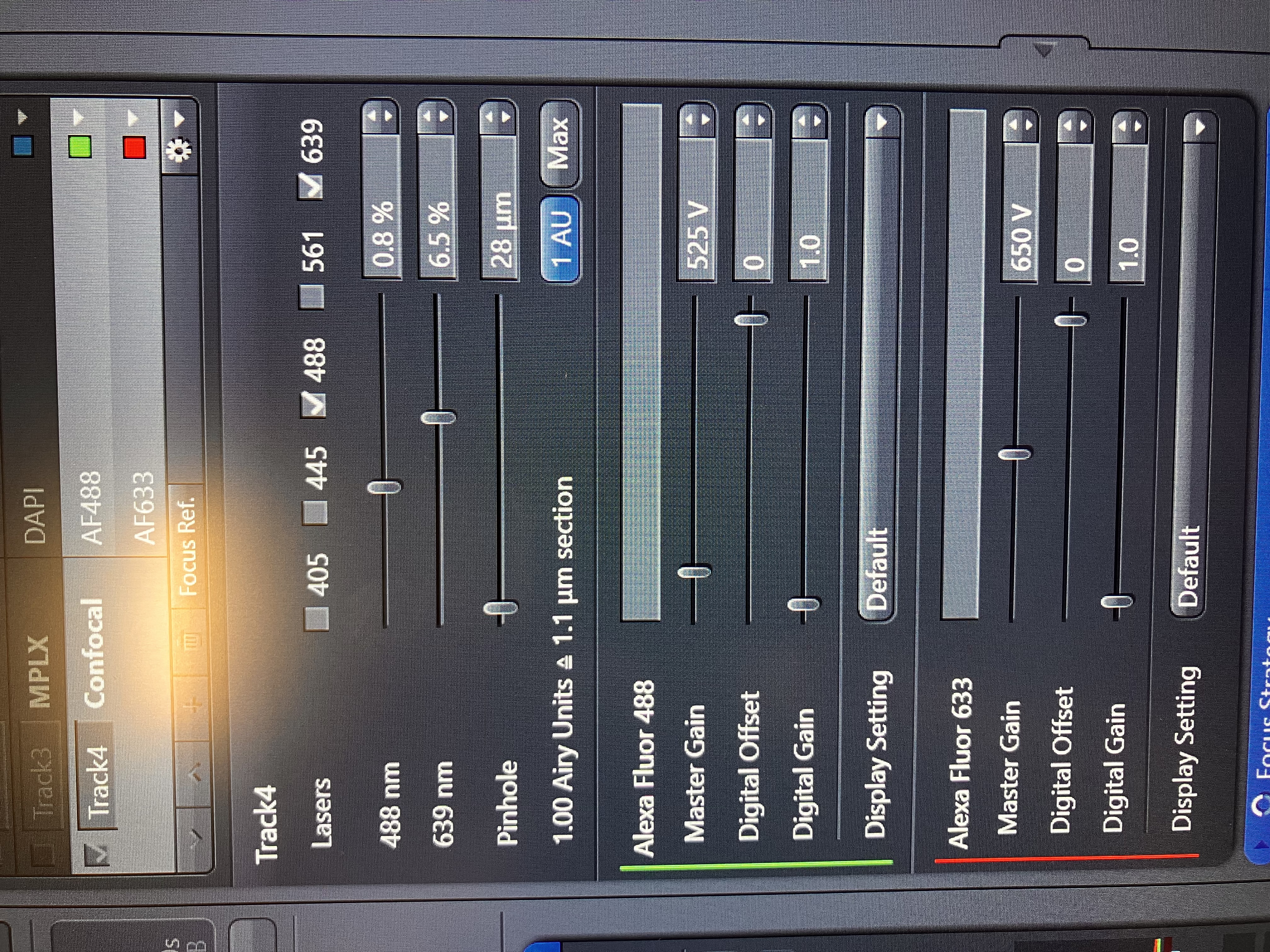 3.3.3 Toggle through the Tracks and Optimize View Settings the laser power and gain settings for each track.