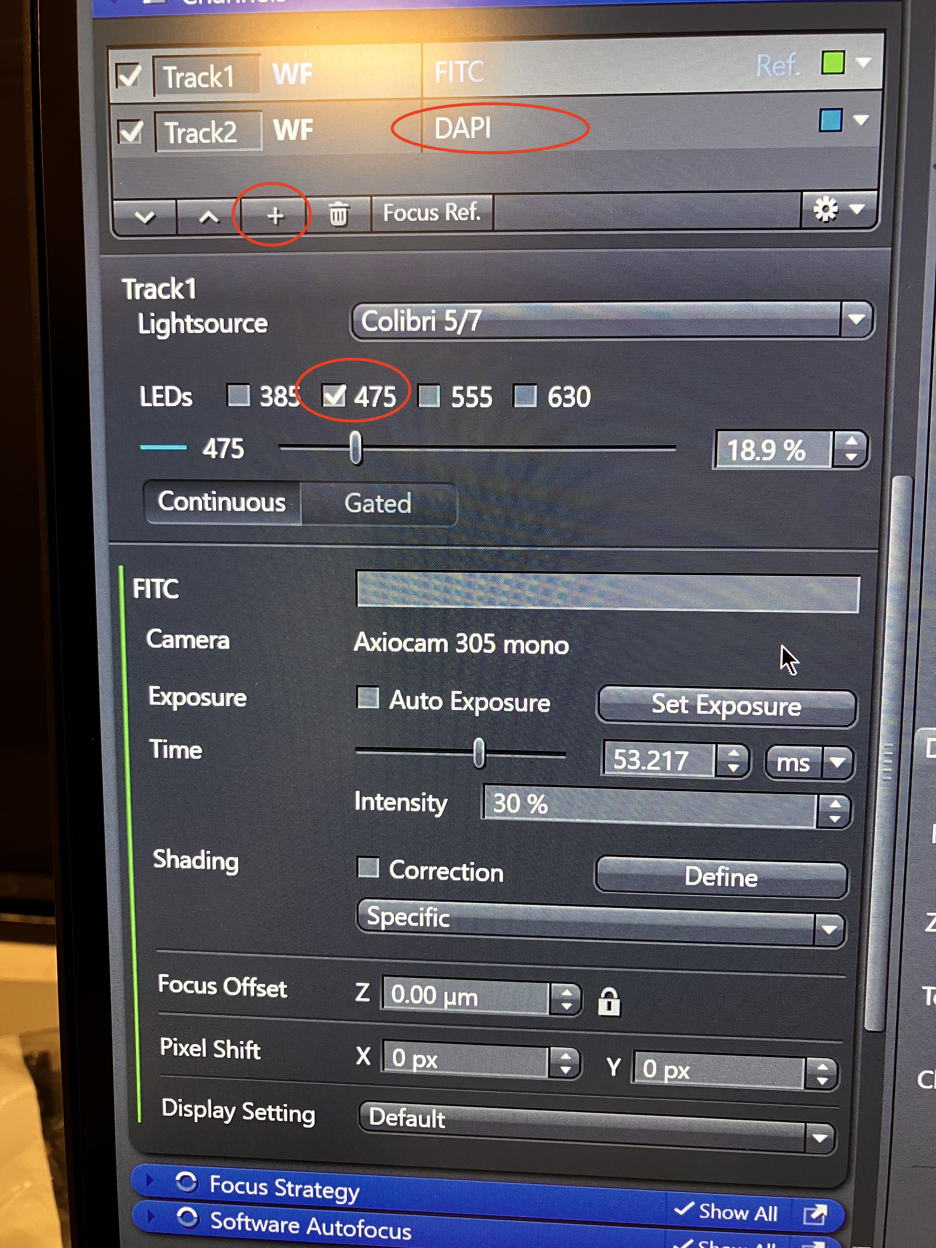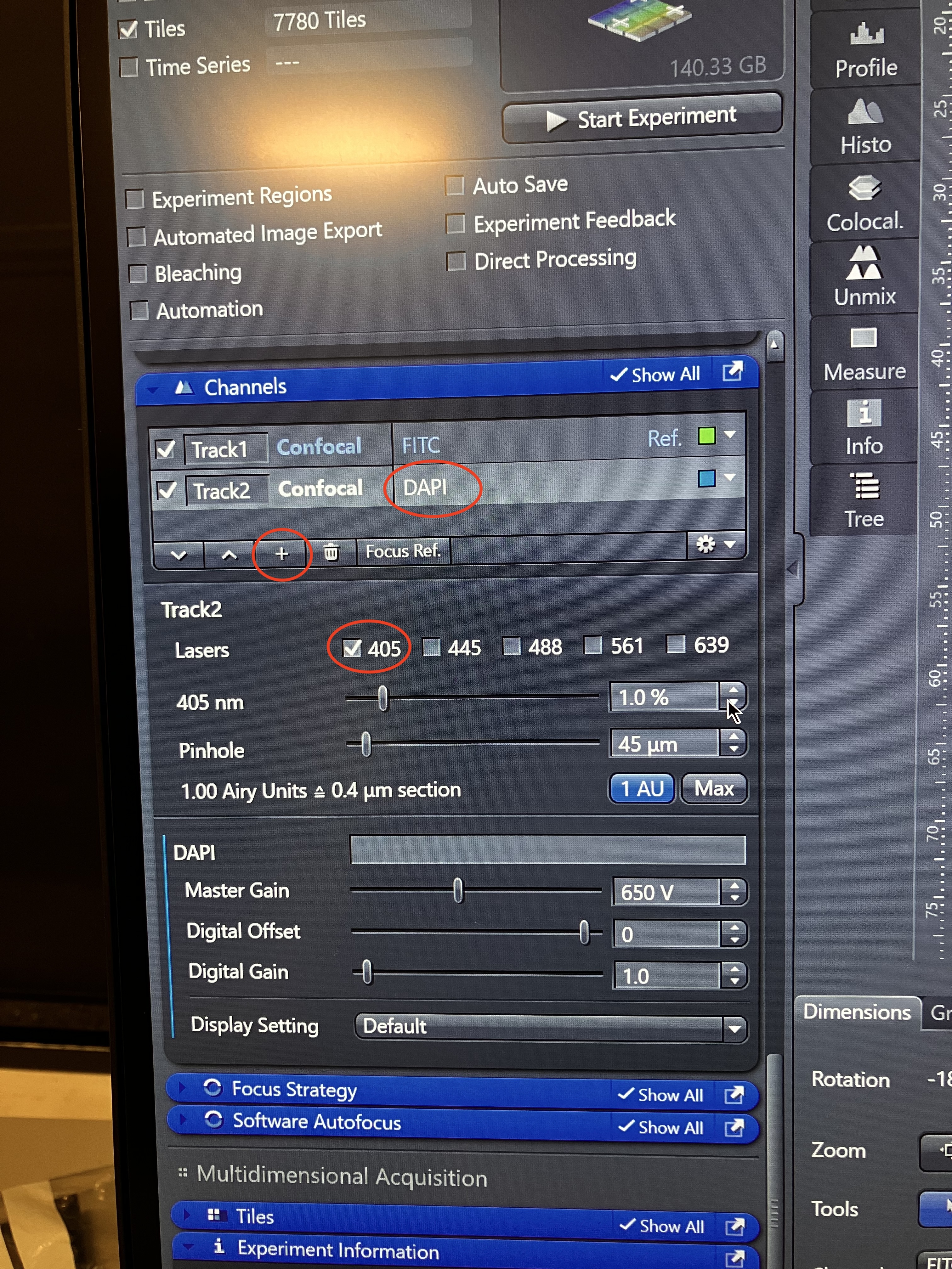 - Important Note: Tracks that measure DAPI are set to be UV (invisible) light tracks, by default, if you used Smart Setup.