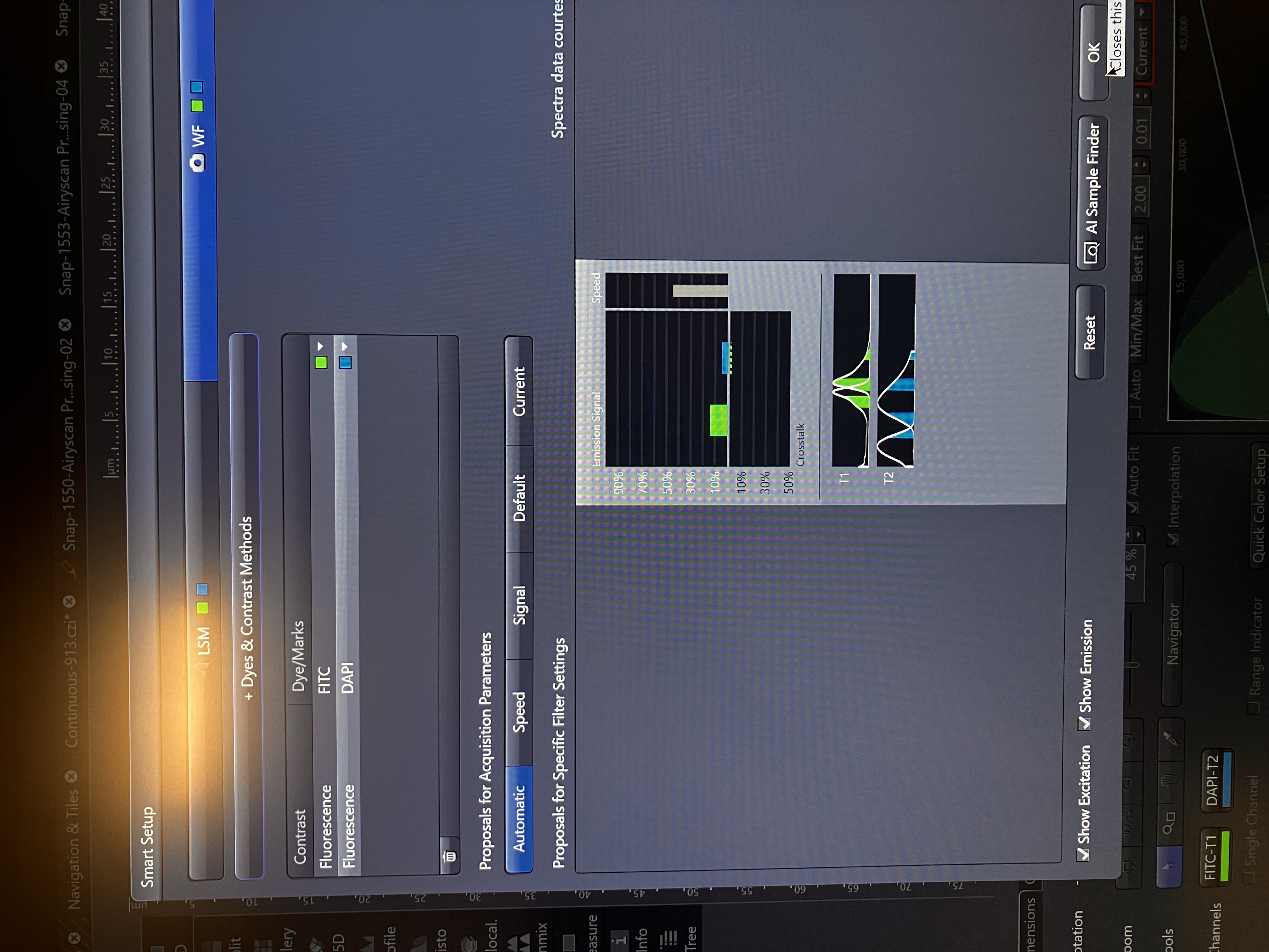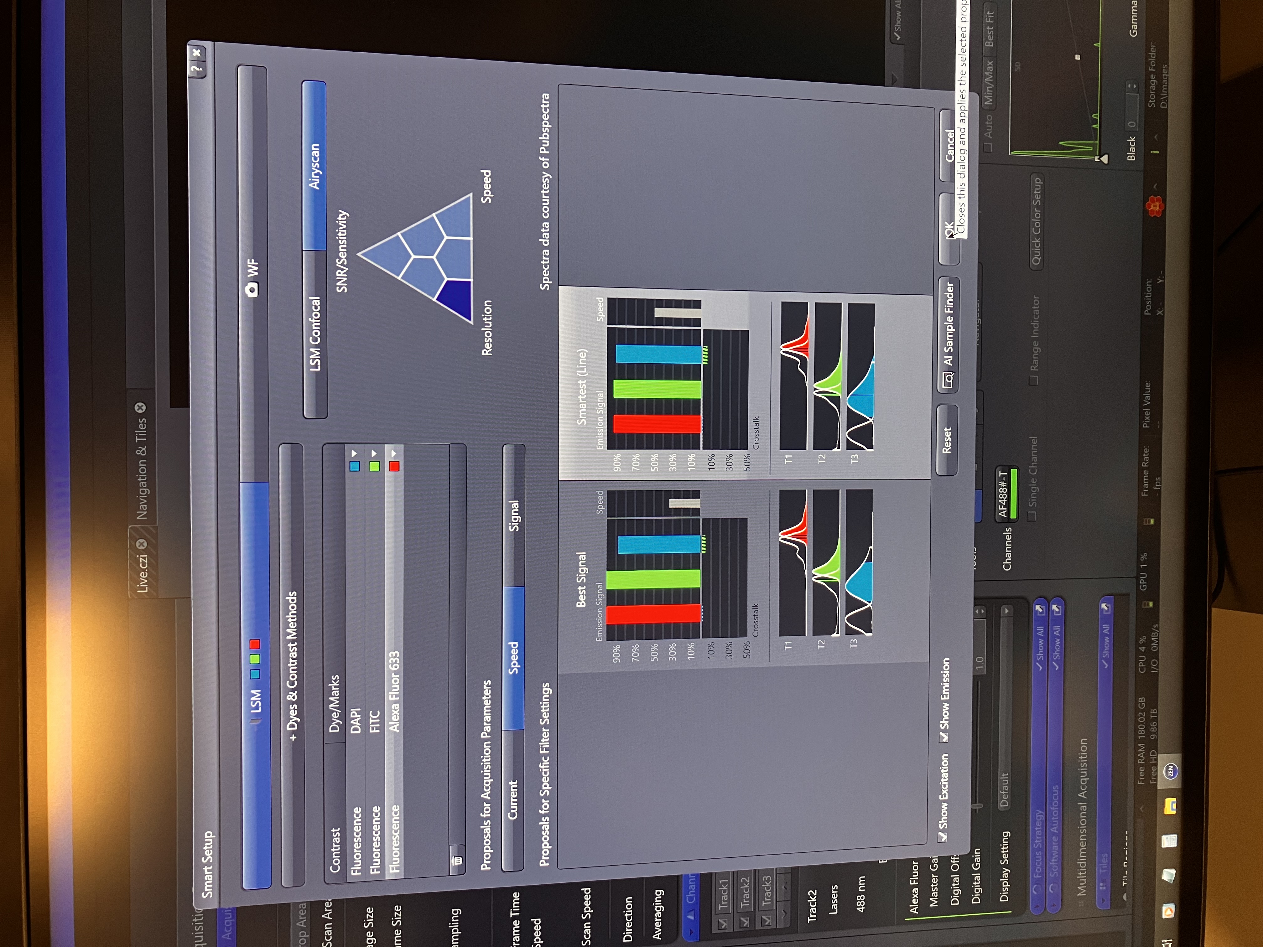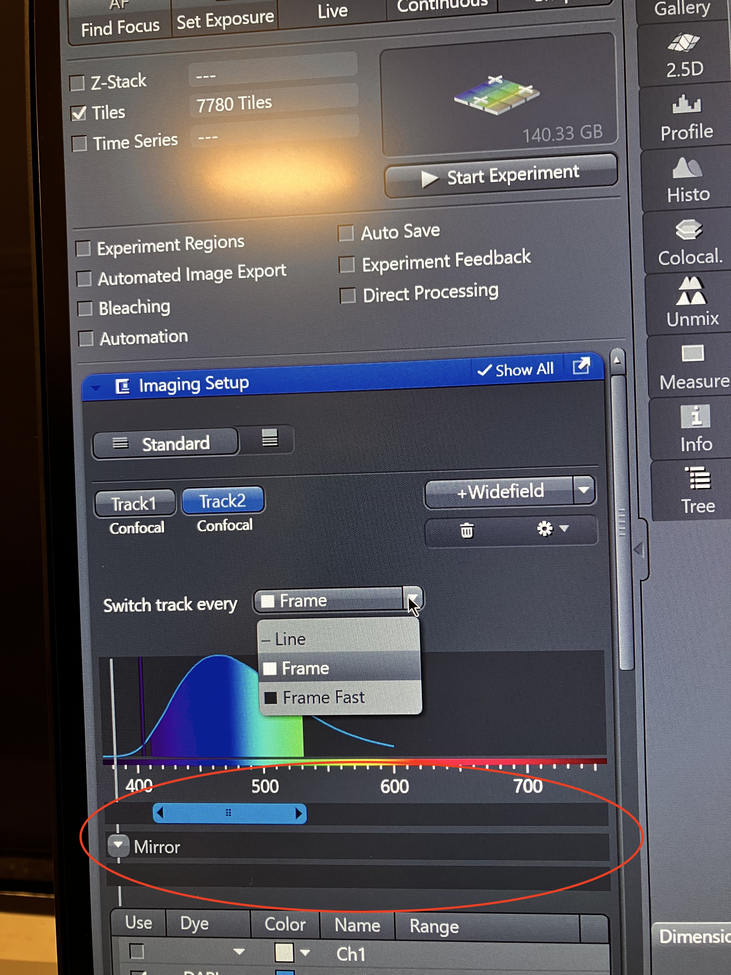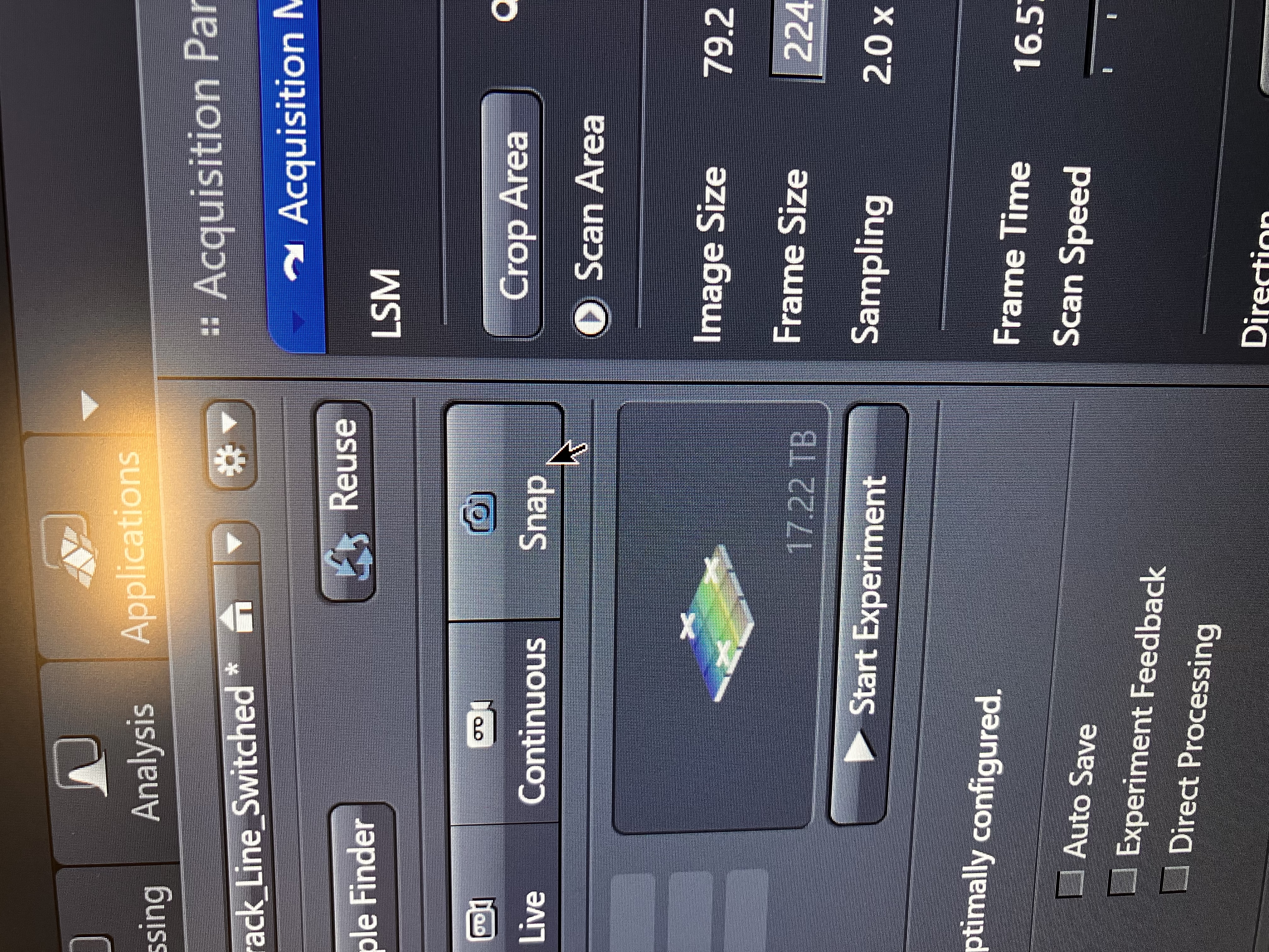 - Important Note: This can take a while due to switching between tracks. A good way to speed this up is to keep the acquisition settings similar or identical across the tracks. The beam splitter setup being different across the tracks can often cause slow switching.