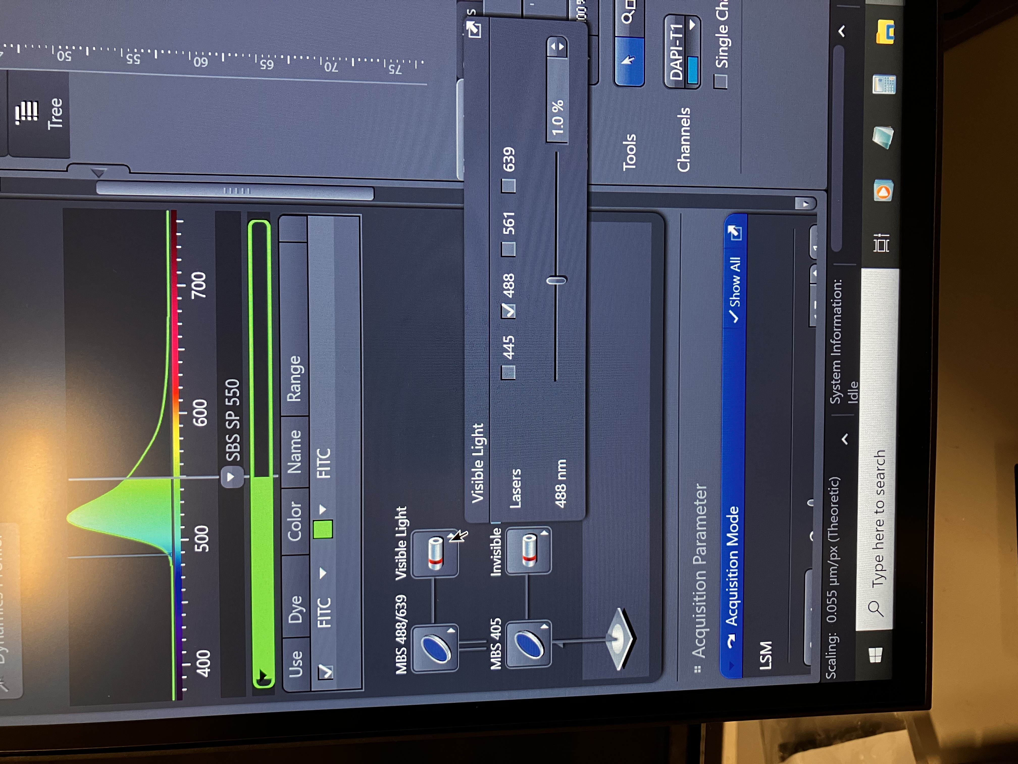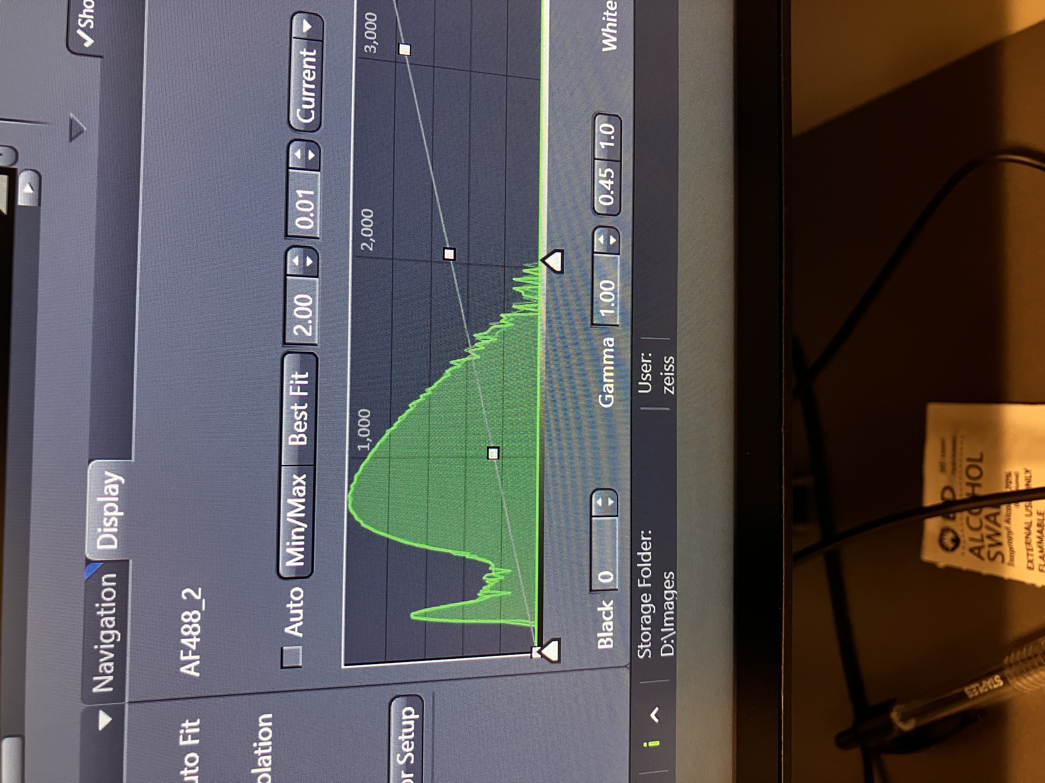 - For confocal, laser power should be in the loose range of 1 to 5.