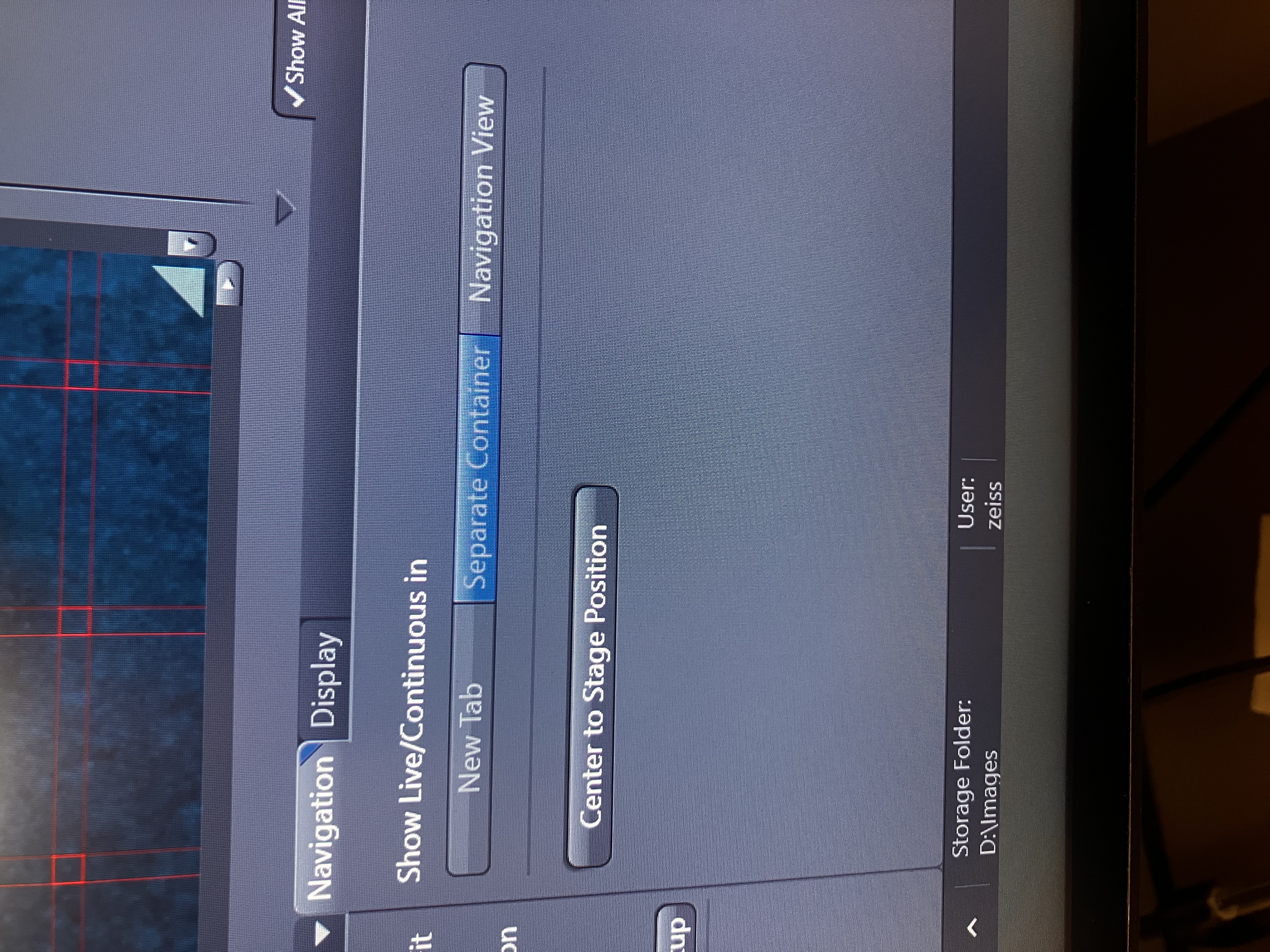 - Ensure that the stage is at the position that you saved during the setup procedure by tapping “Pos. 2” on the touch pad. It can be helpful to select the following setting to keep the navigation view present: