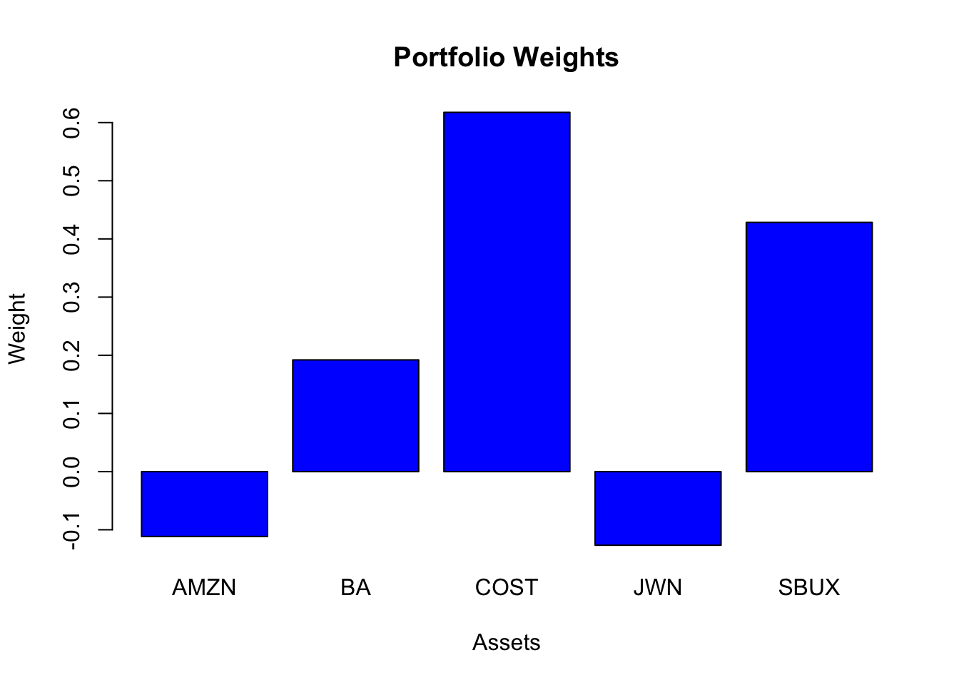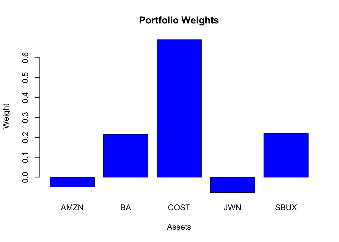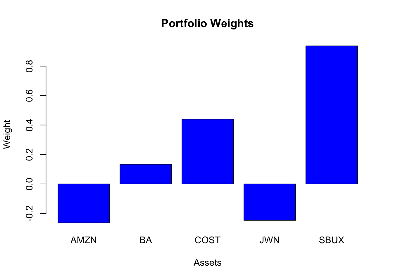 Here, the weights in AMZN and JWN are set to zero.