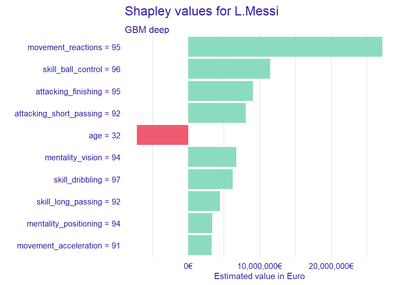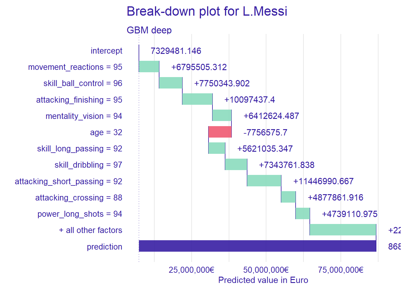 ggtitle("Break-down plot for L.Messi","") ## Scale for y is already present.