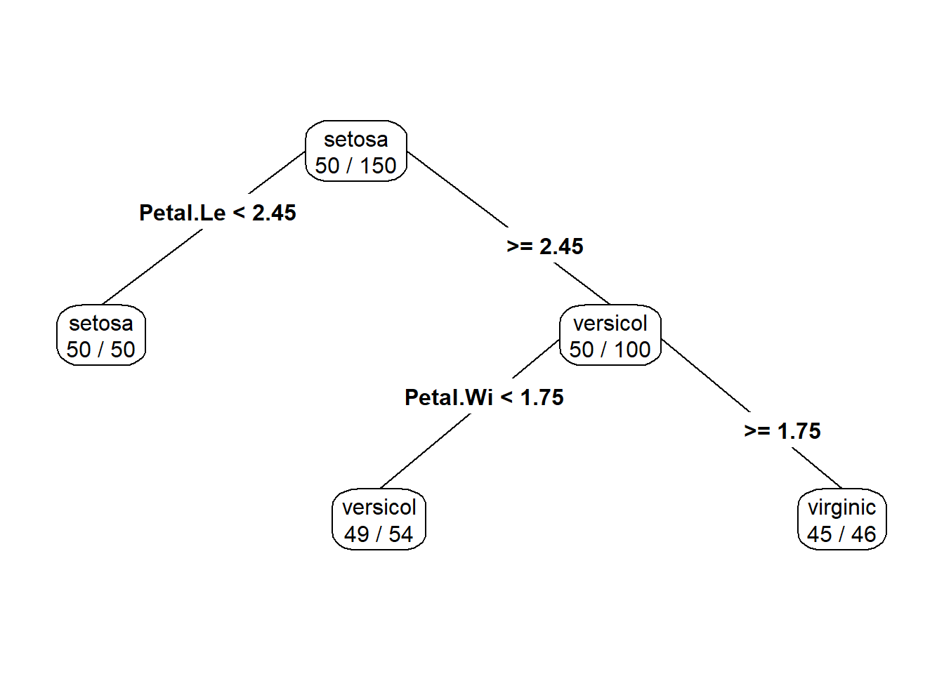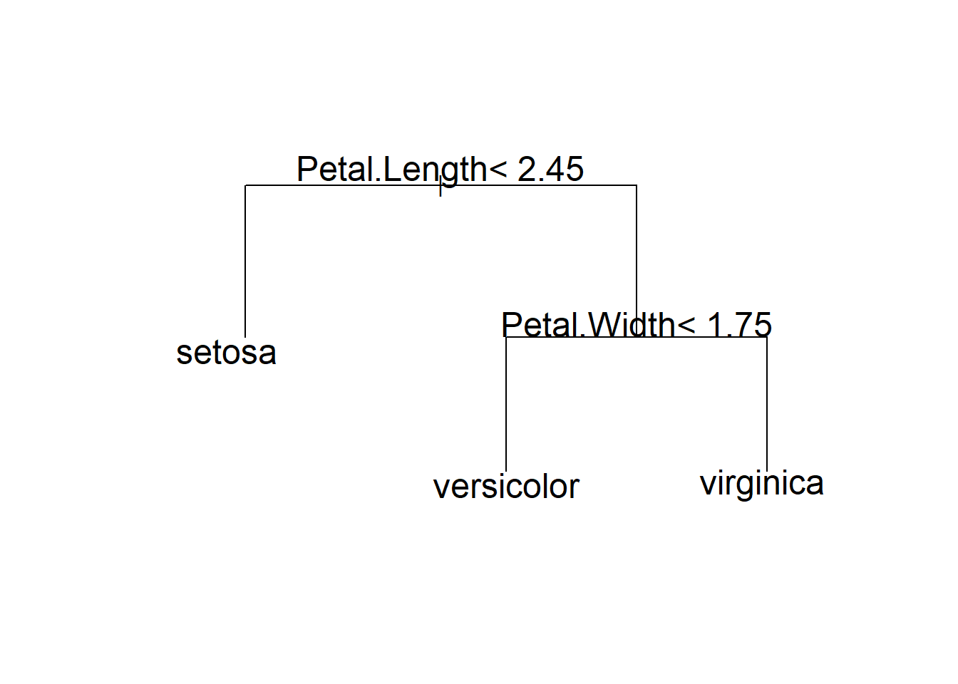 ## Sepal.Width < 2.45 to the left, improve= 3.057839, (0 missing)