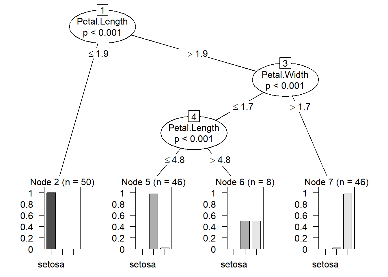 ## Petal.Length < 4.75 to the left, agree=0.890, adj=0.757, (0 split)