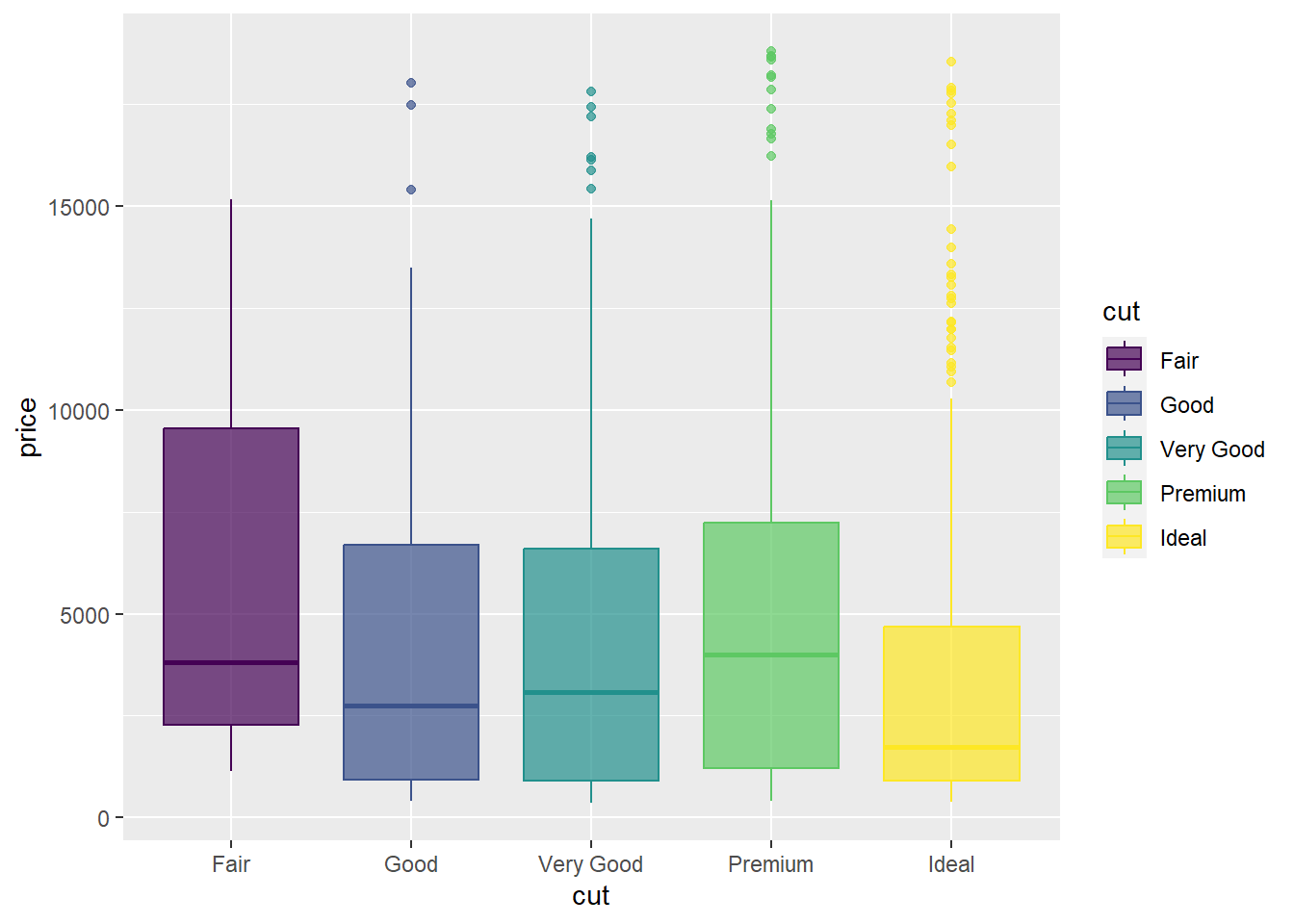 aes(x=cut,y=price,fill=cut))+