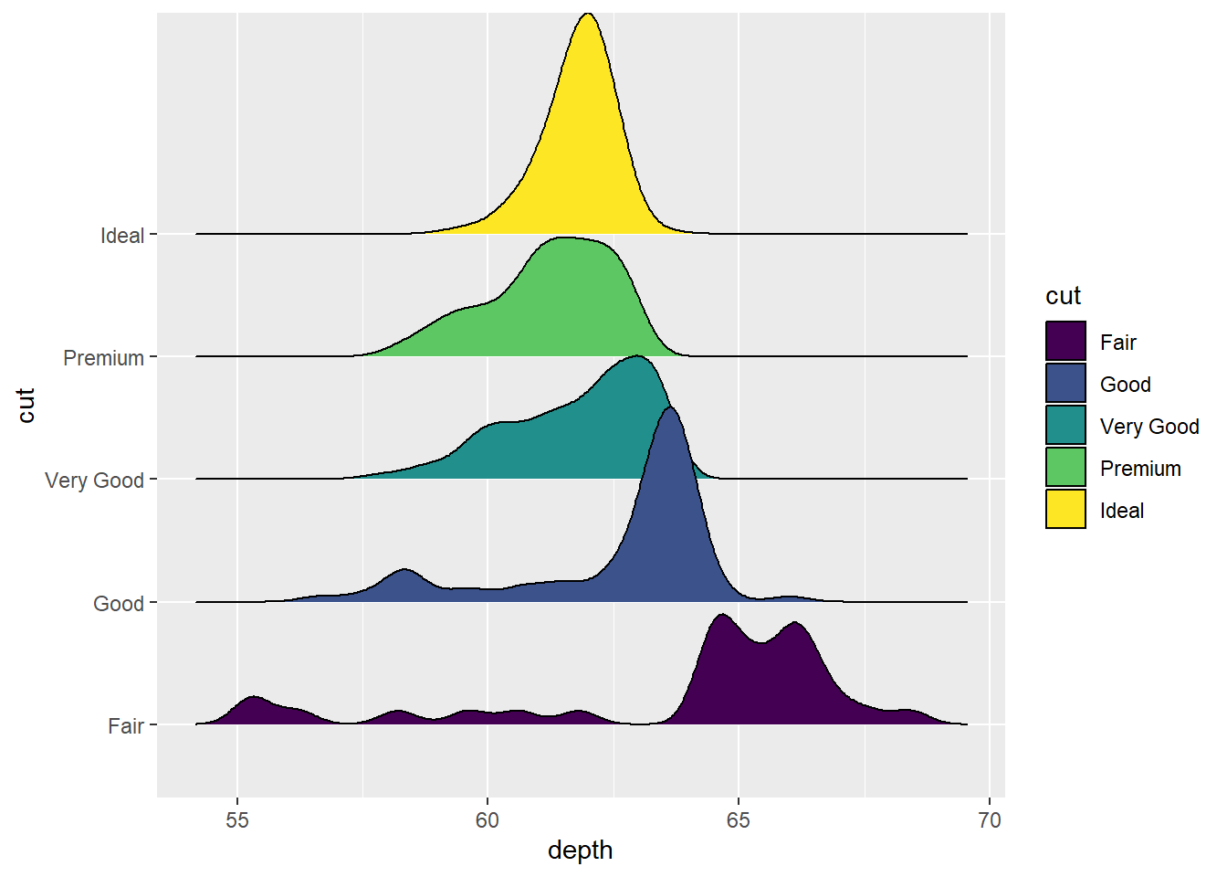 ggplot(aes(x = depth ,y = cut ,fill = cut)) +