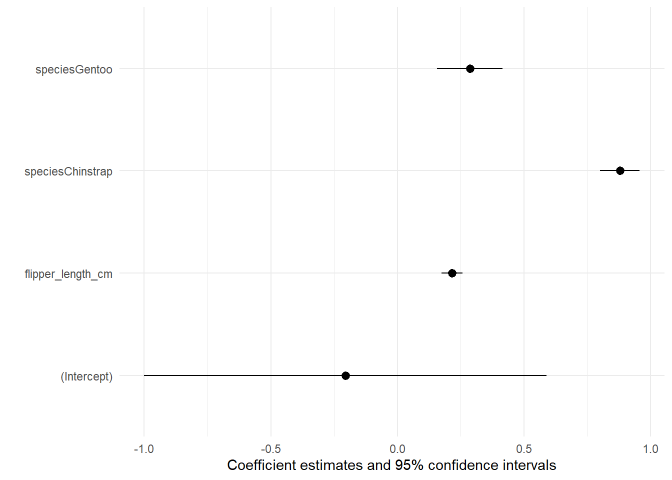 mod <- lm(bill_length_cm ~ flipper_length_cm + species, data = dat)