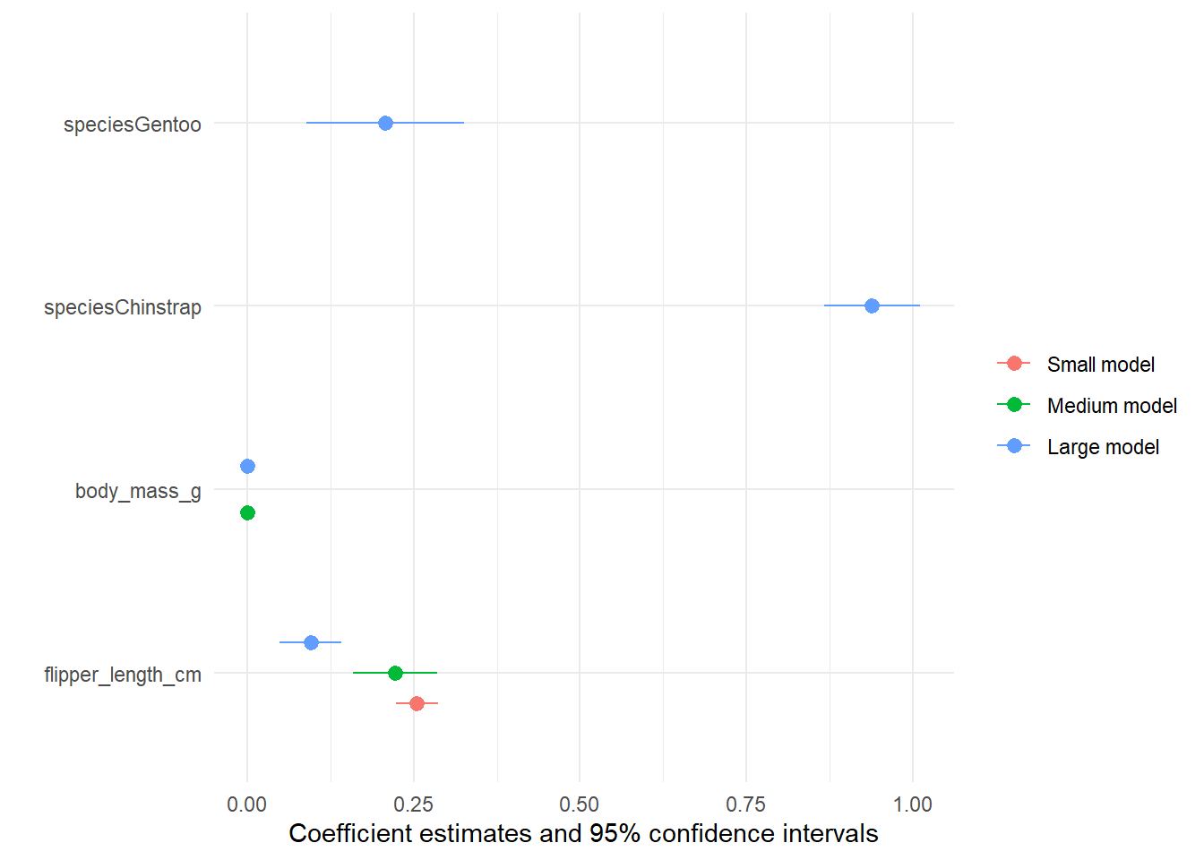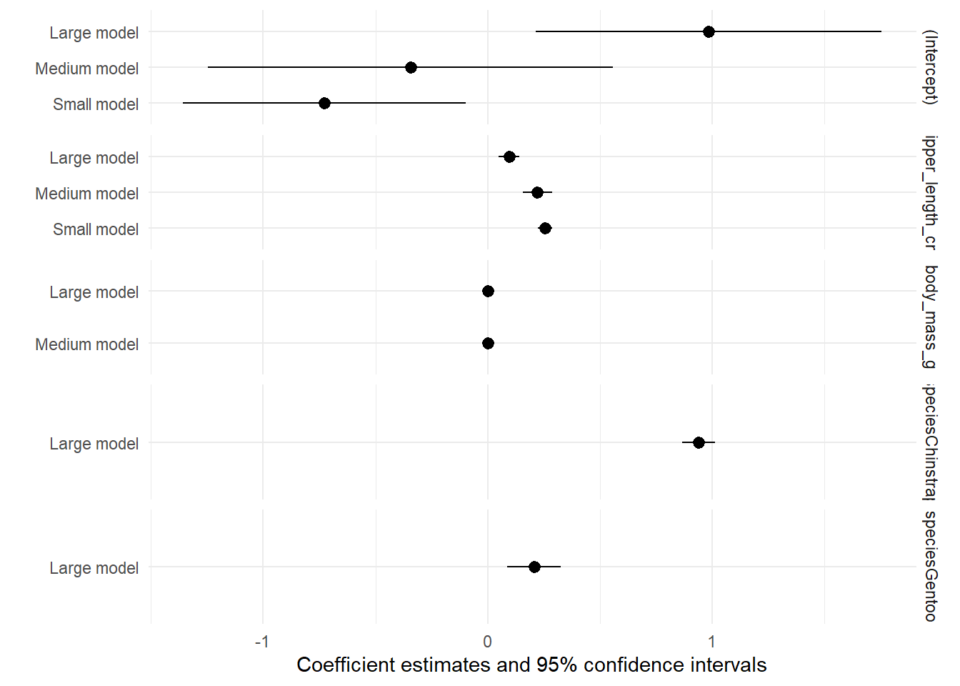 modelplot(models, draw = FALSE)## term model estimate std.error conf.low conf.high