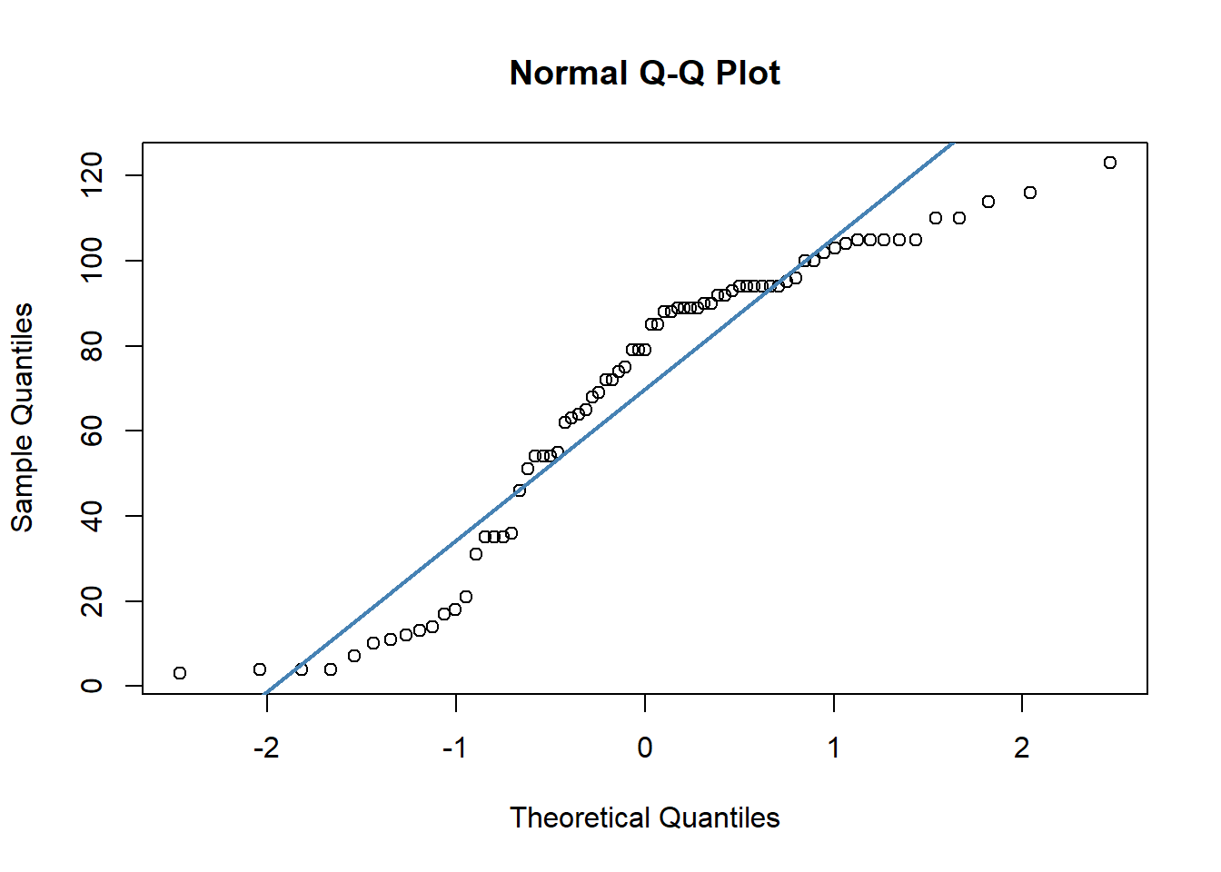 Using the Shapiro-Wilk test we note that our data are not approximately normal: