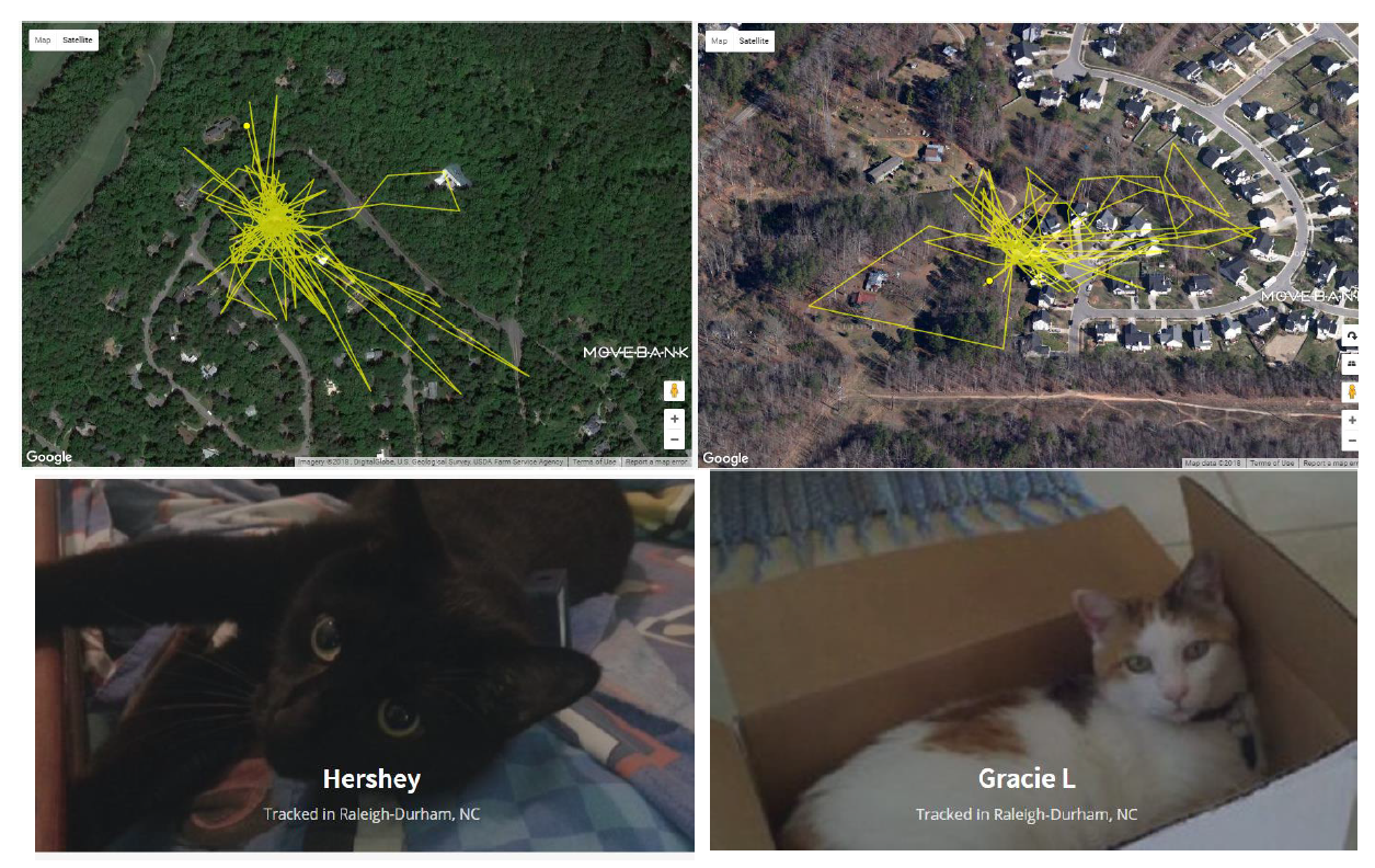 In the following dataset, we have data on the number of hours that various cats spend away from their house over a one week period. They are tracked via cool GPS collars, and these data make pretty pictures of how far they traveled from their homes.