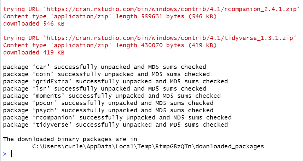 install.packages(c("car", "coin", "gridExtra", "lsr", "moments", "ppcor", "psych", "rcompanion", "tidyverse"))