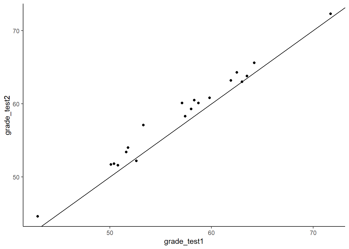 We can visualize the differences between time point 1 and time point 2 using a scatterplot: