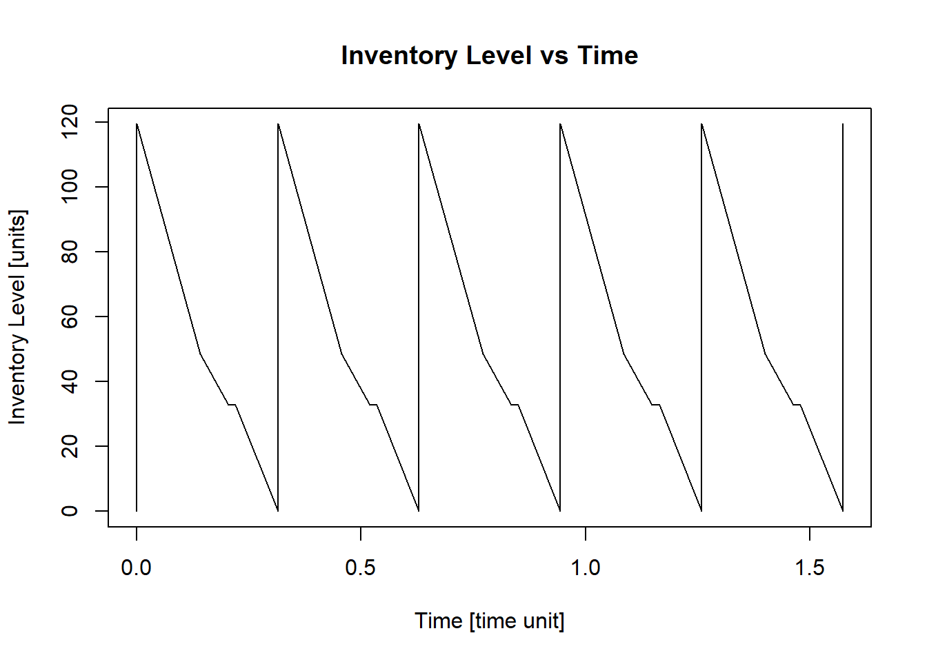 In a situation when the cycle does not have a constant demand, the inventory level plot looks life Figure 4.3.