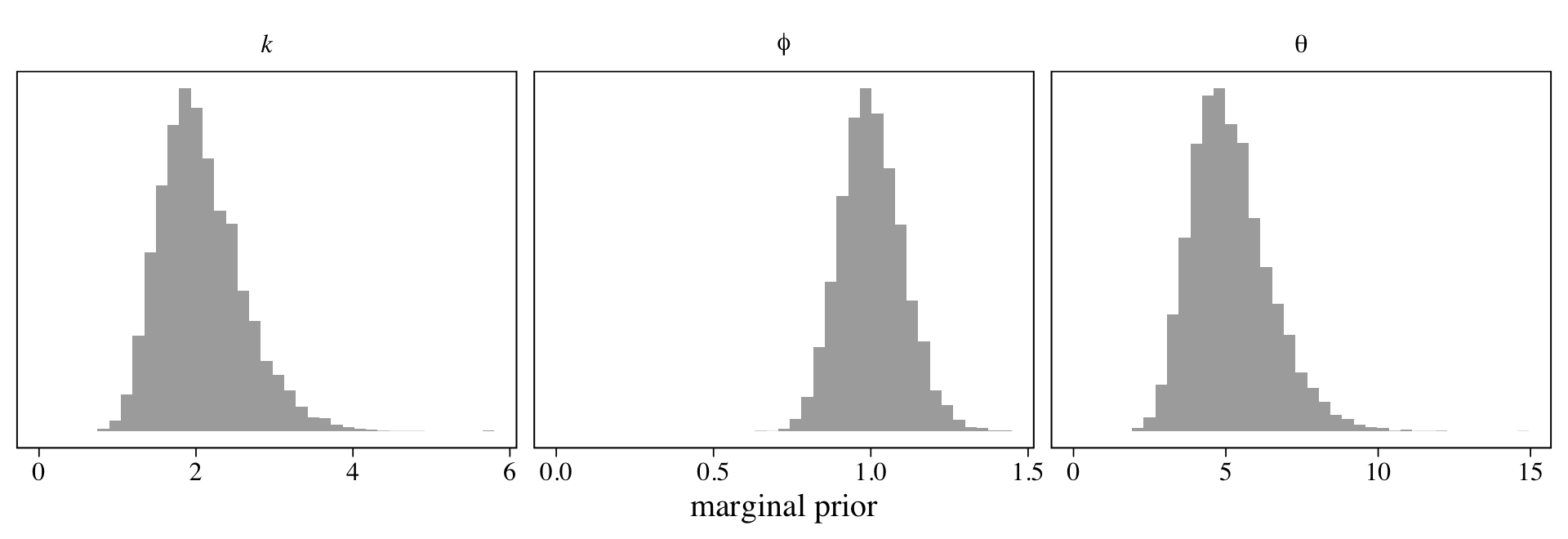 McElreath’s quick and dirty solution was to set \(k \sim \operatorname{Exponential}(0.5)\), which has a prior predictive mean of 2.